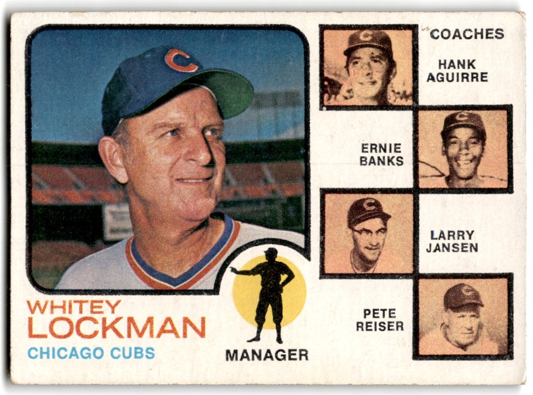 | 1973 Topps 81 Whitey Lockman/Hank Aguirre/Ernie Banks/Larry Jansen/Pete Reiser |