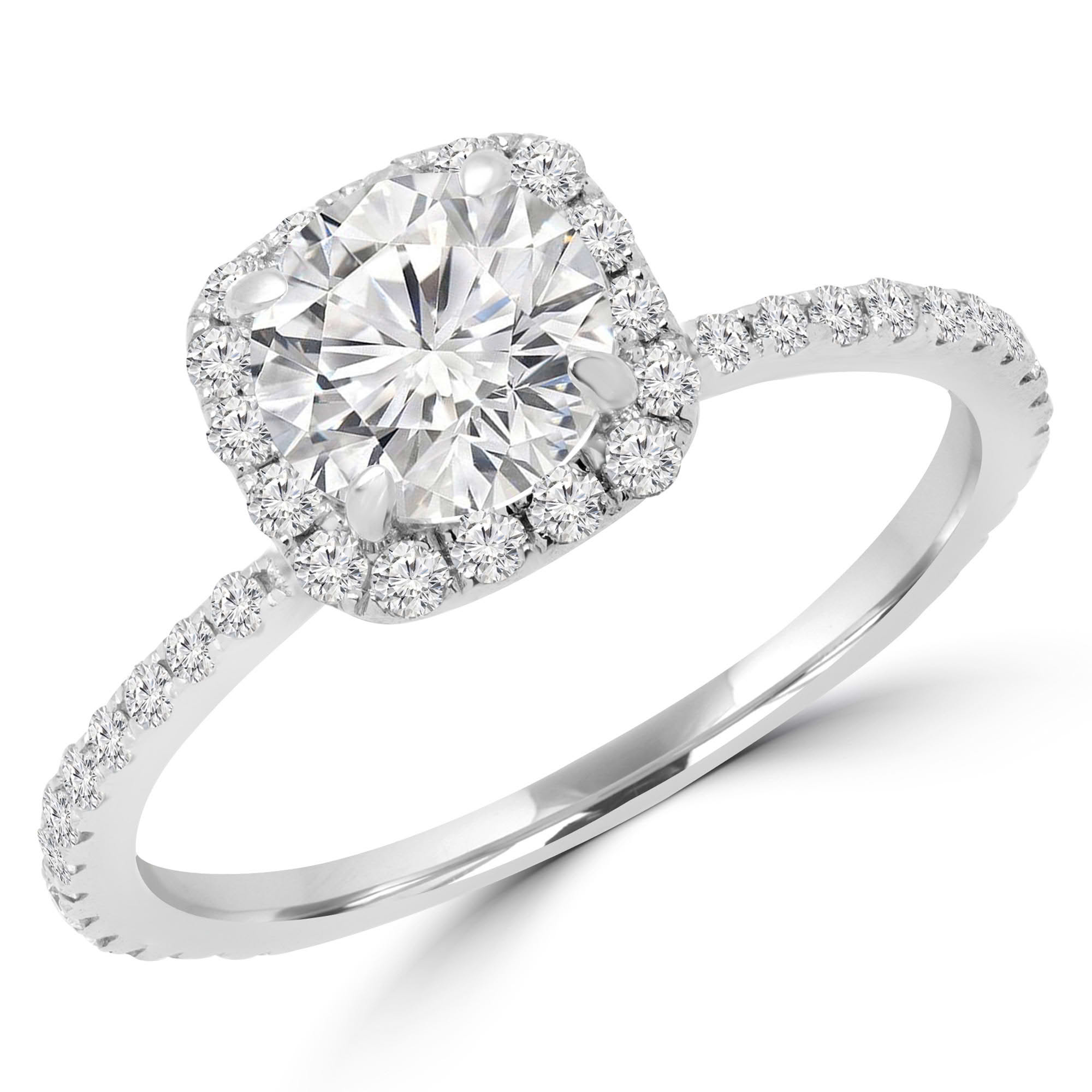 1.27 CT Round VS1 F Diamond Halo Engagement Ring 14K White Gold