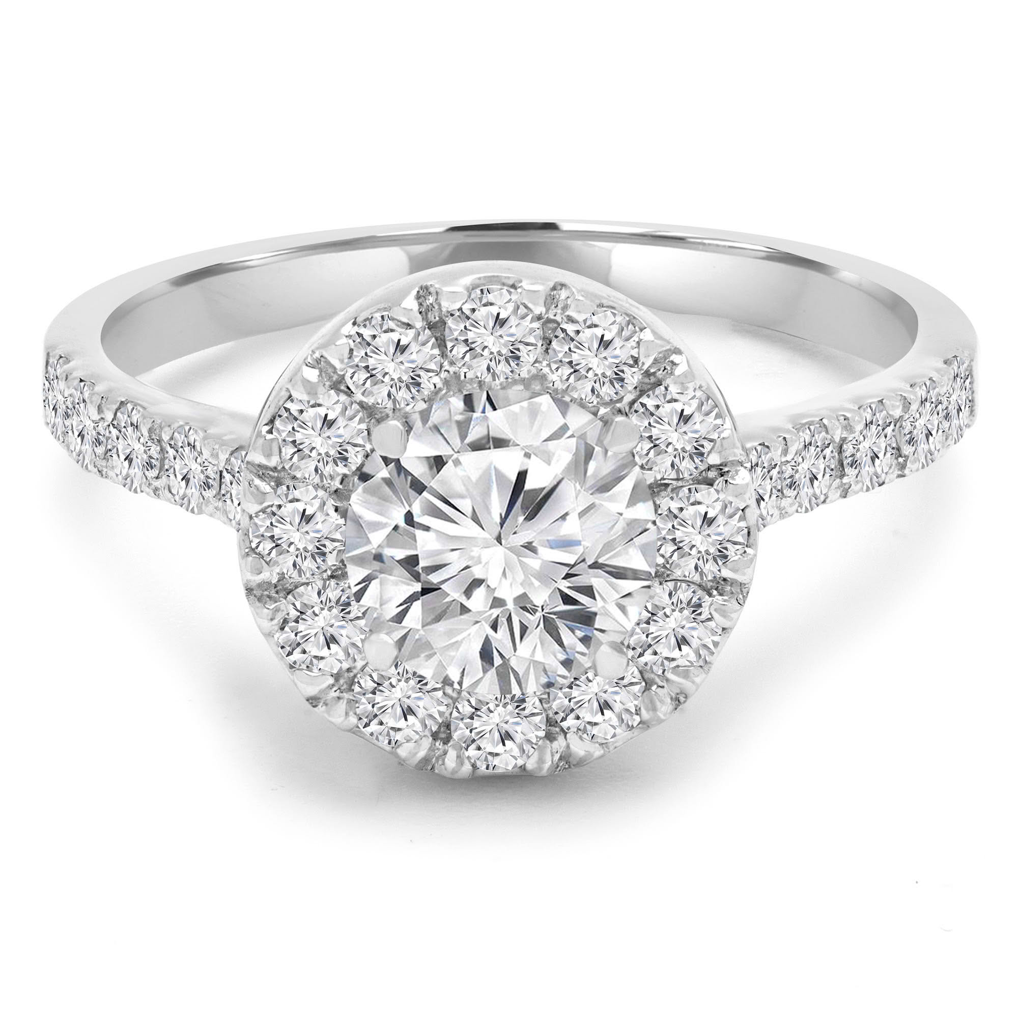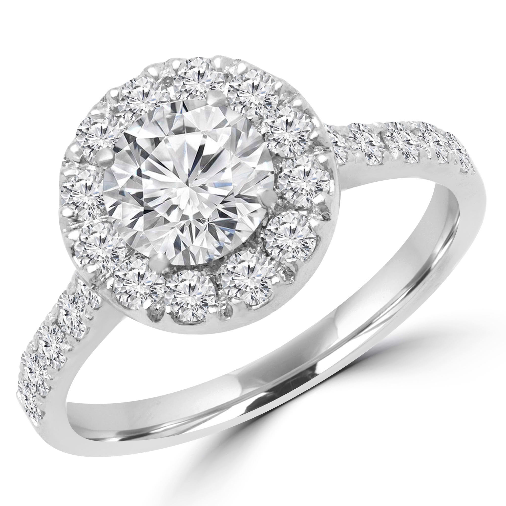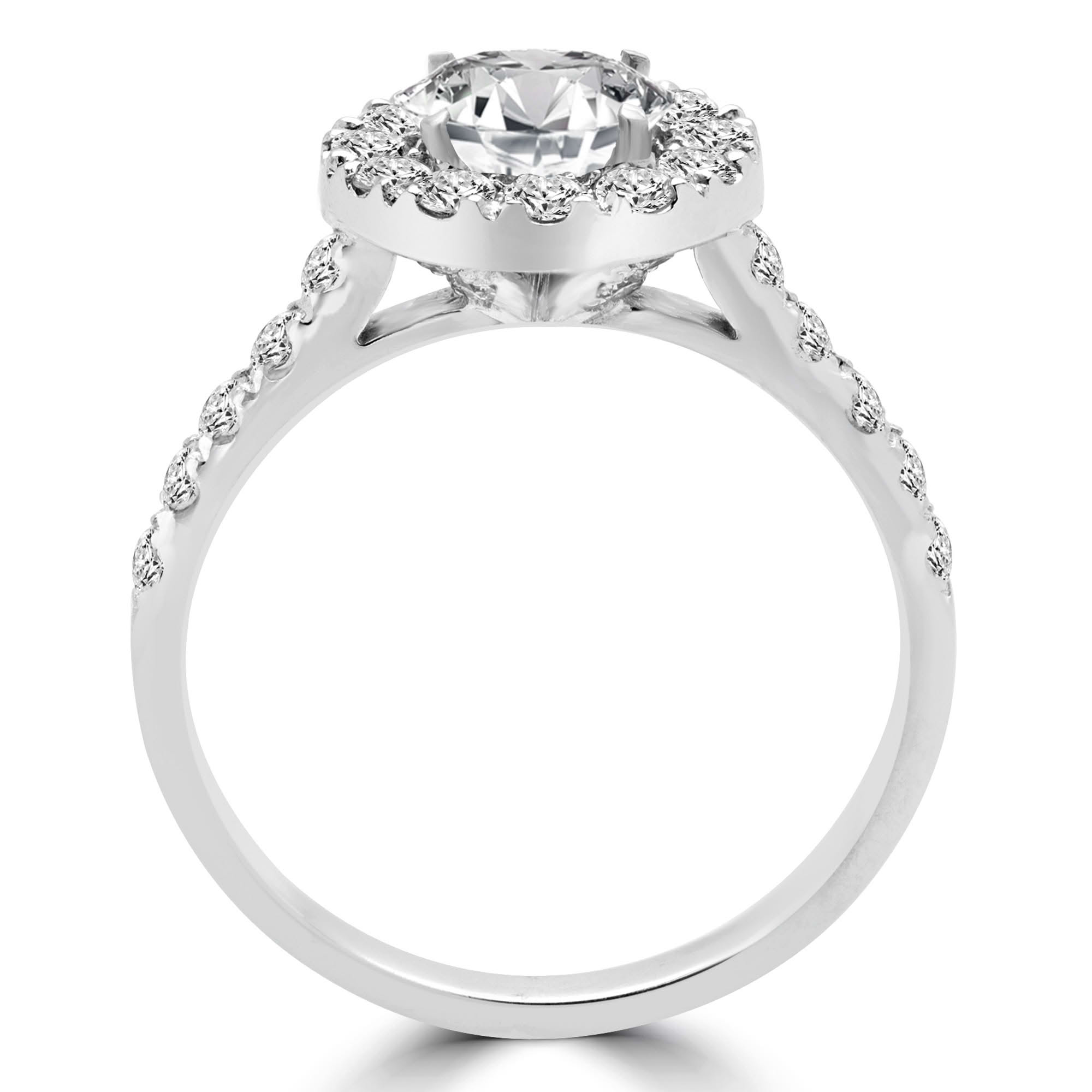 1.73 CT Round VS1 H Diamond Halo Engagement Ring 14K White Gold