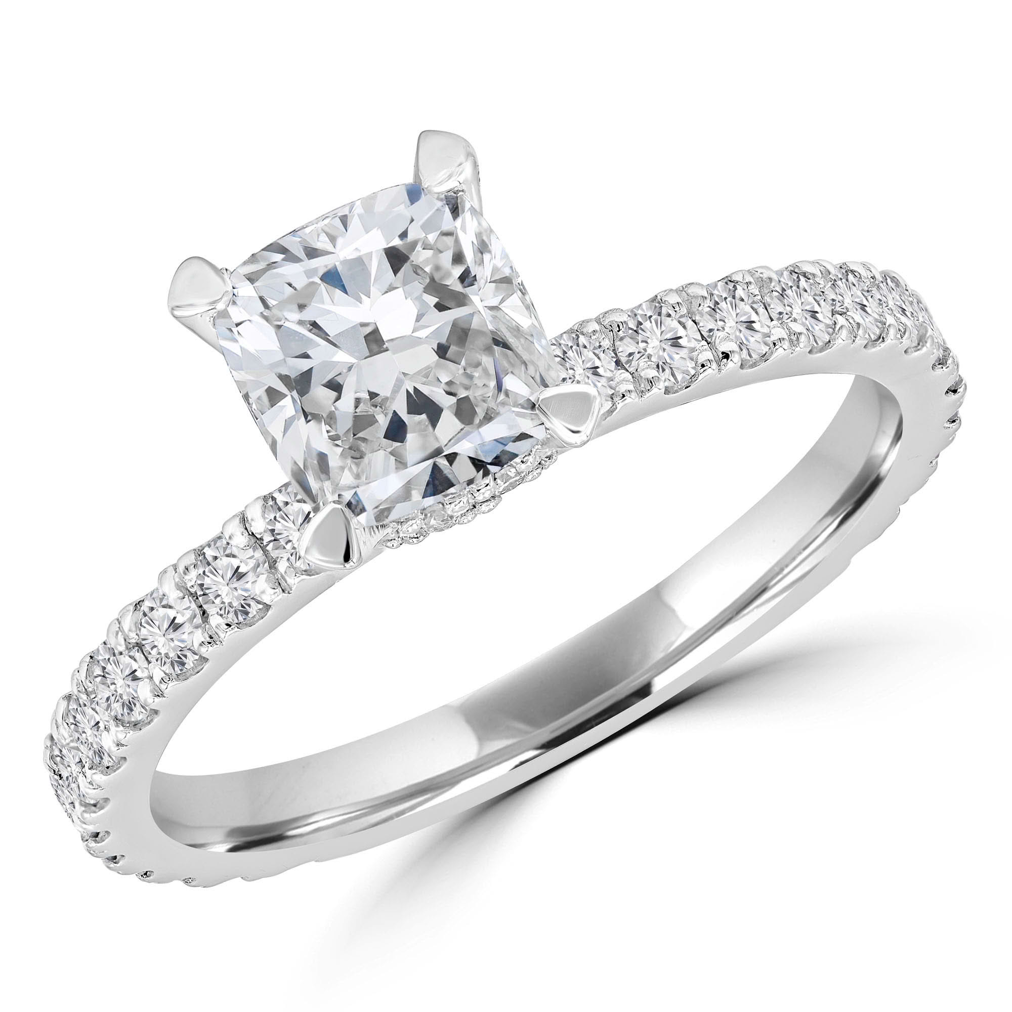 1.63 CT Cushion I1 G Diamond Pave Engagement Ring 14K White Gold