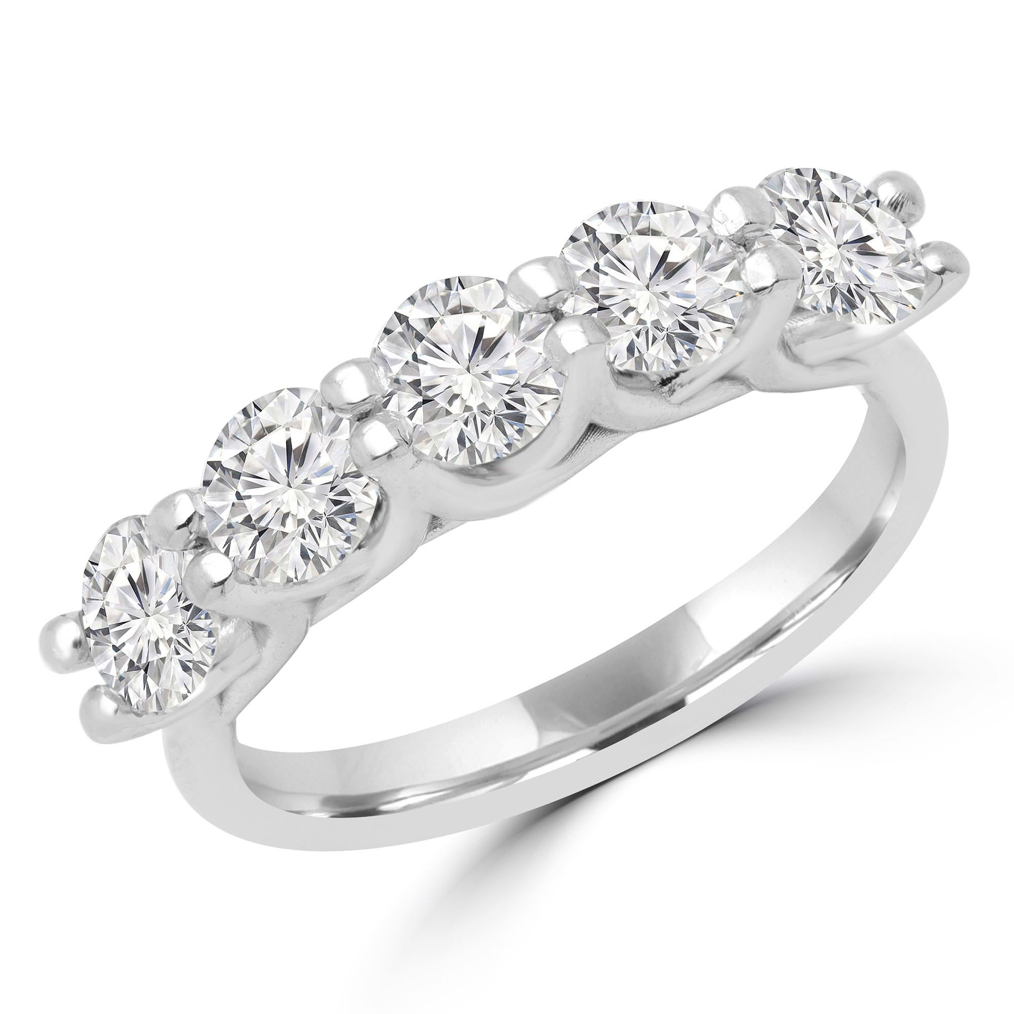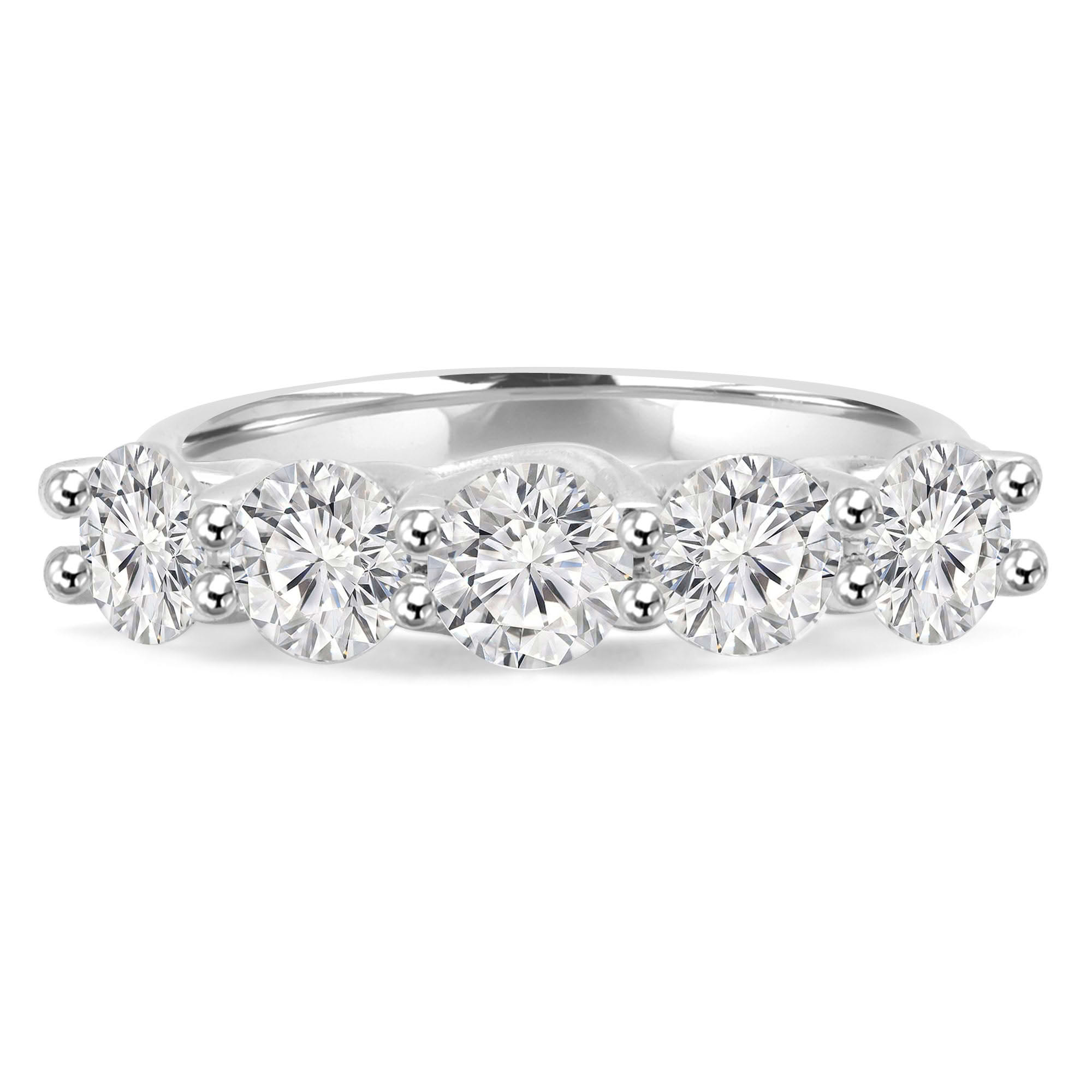 This Five-Stone Anniversary Wedding Band is sure to attract attention with its complex yet understated design. The unbroken band of diamonds will forever remind you of your eternal love.