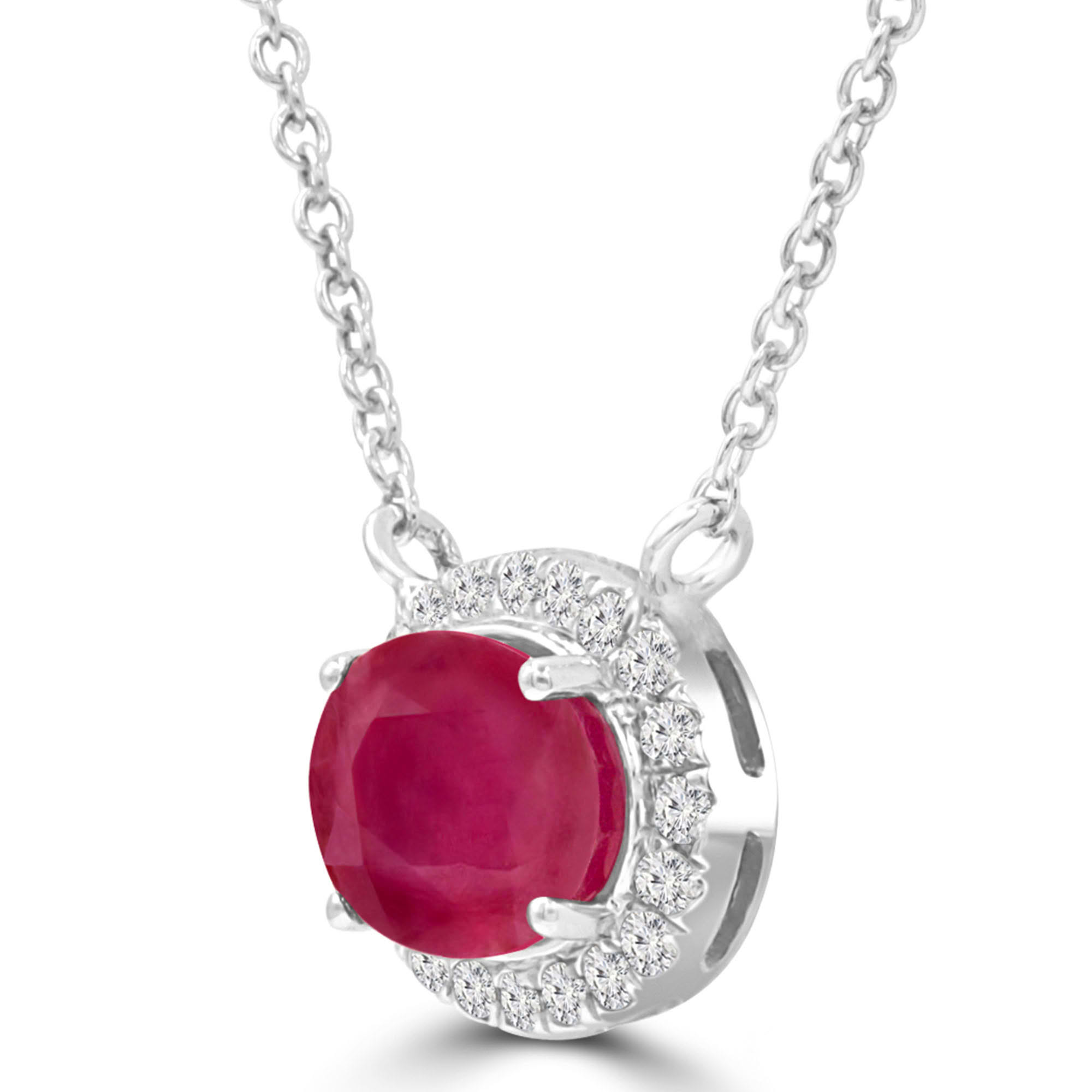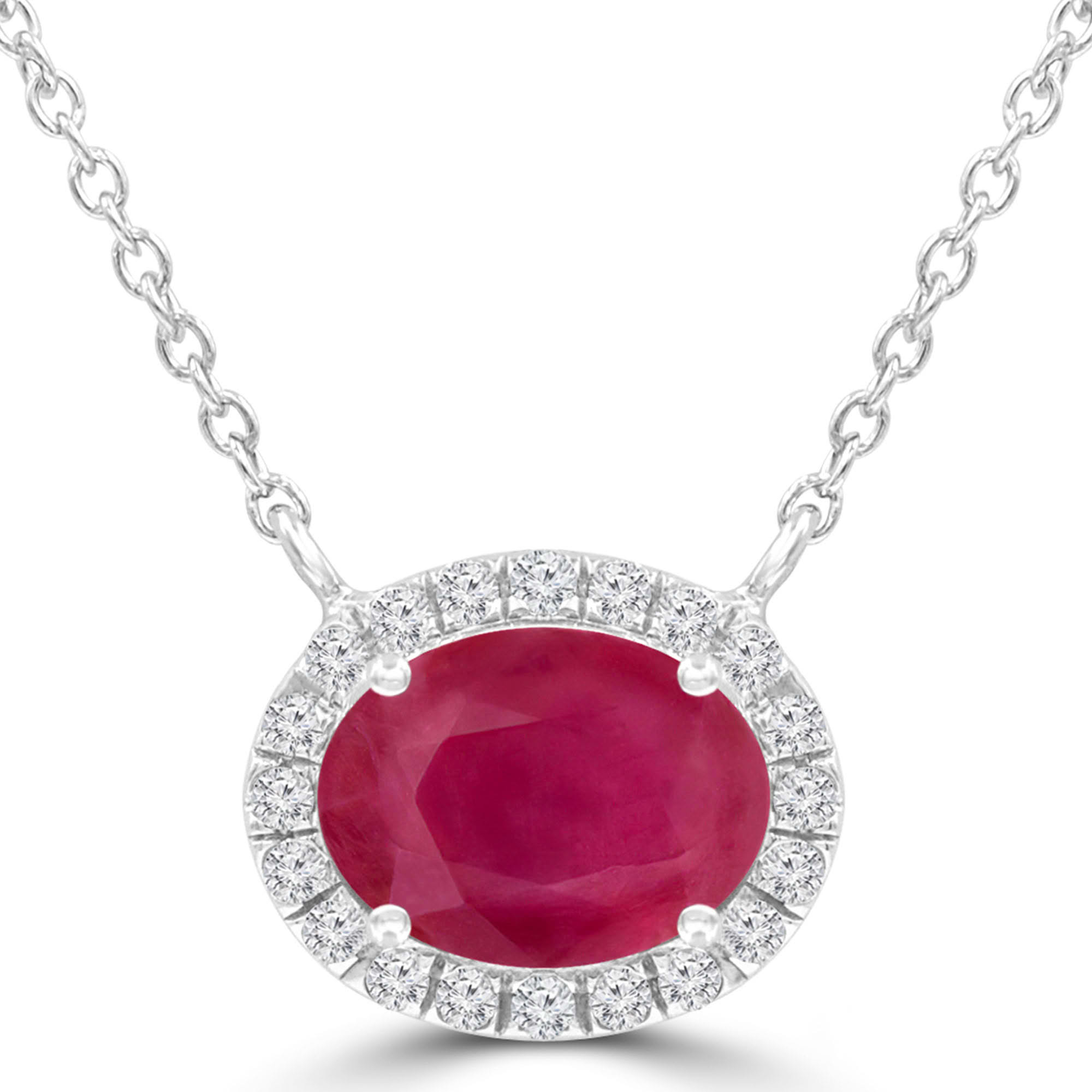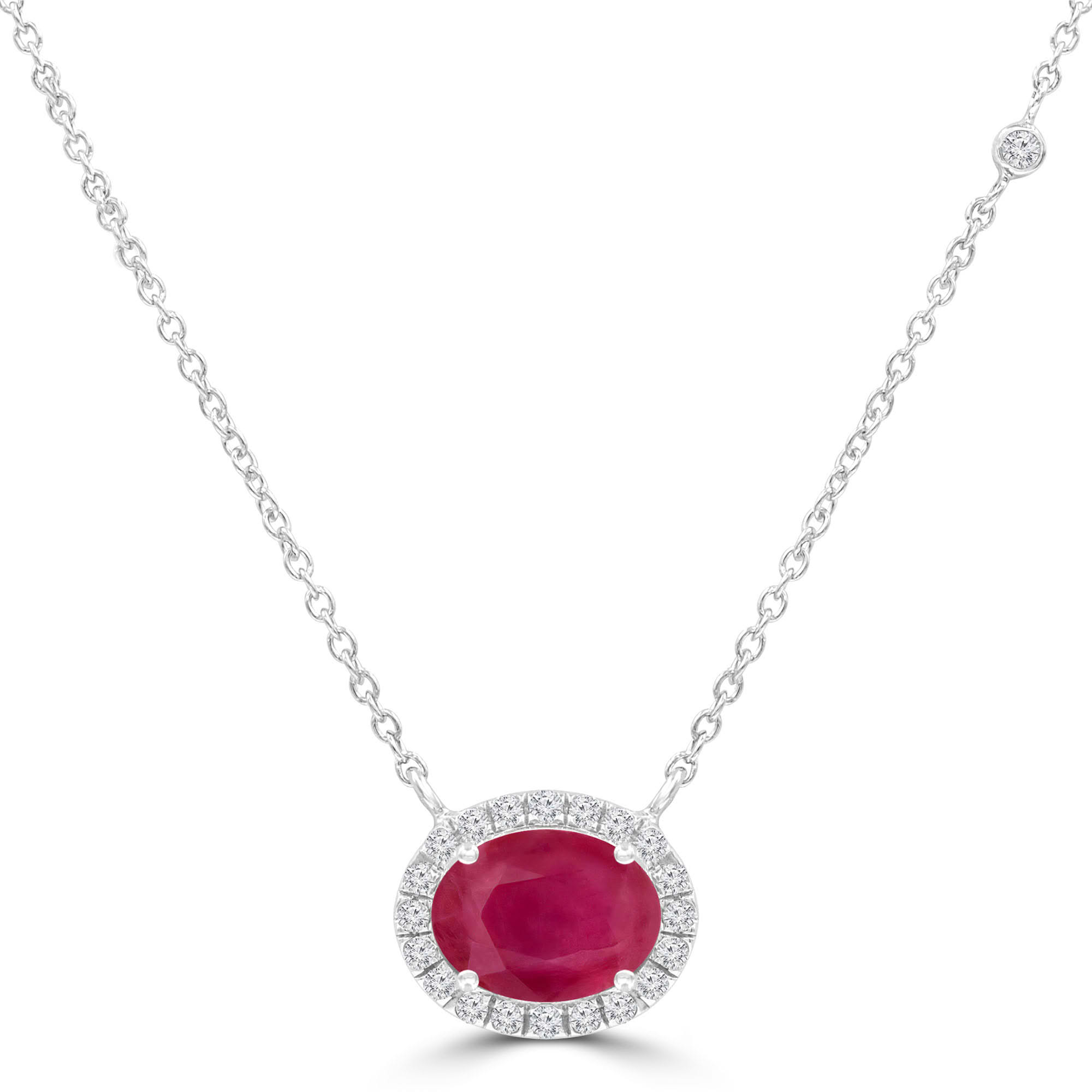 1.82 CT Oval Red Ruby Halo Necklace 14K White Gold