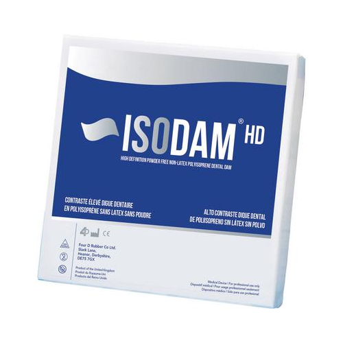 Isodam® HD Polyisoprene Dental Dam is used to isolate specific areas of the mouth during dental procedures, reduce infection risk and increase patient comfort. The high-definition royal blue color enhances contrast to teeth and improves dental imaging.