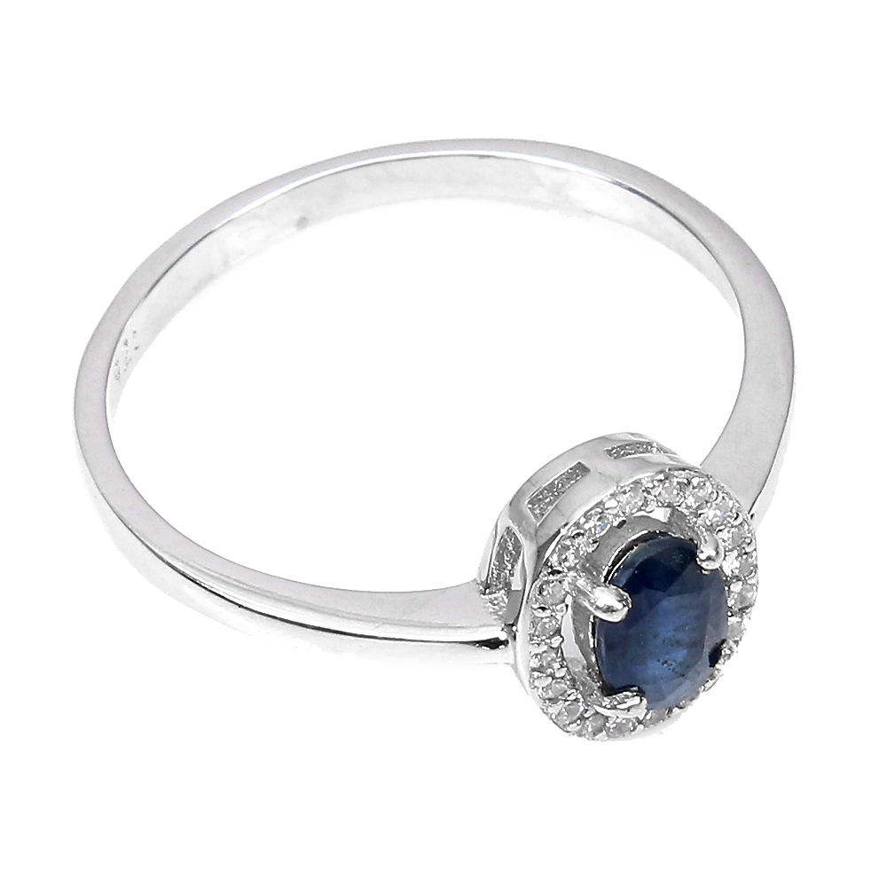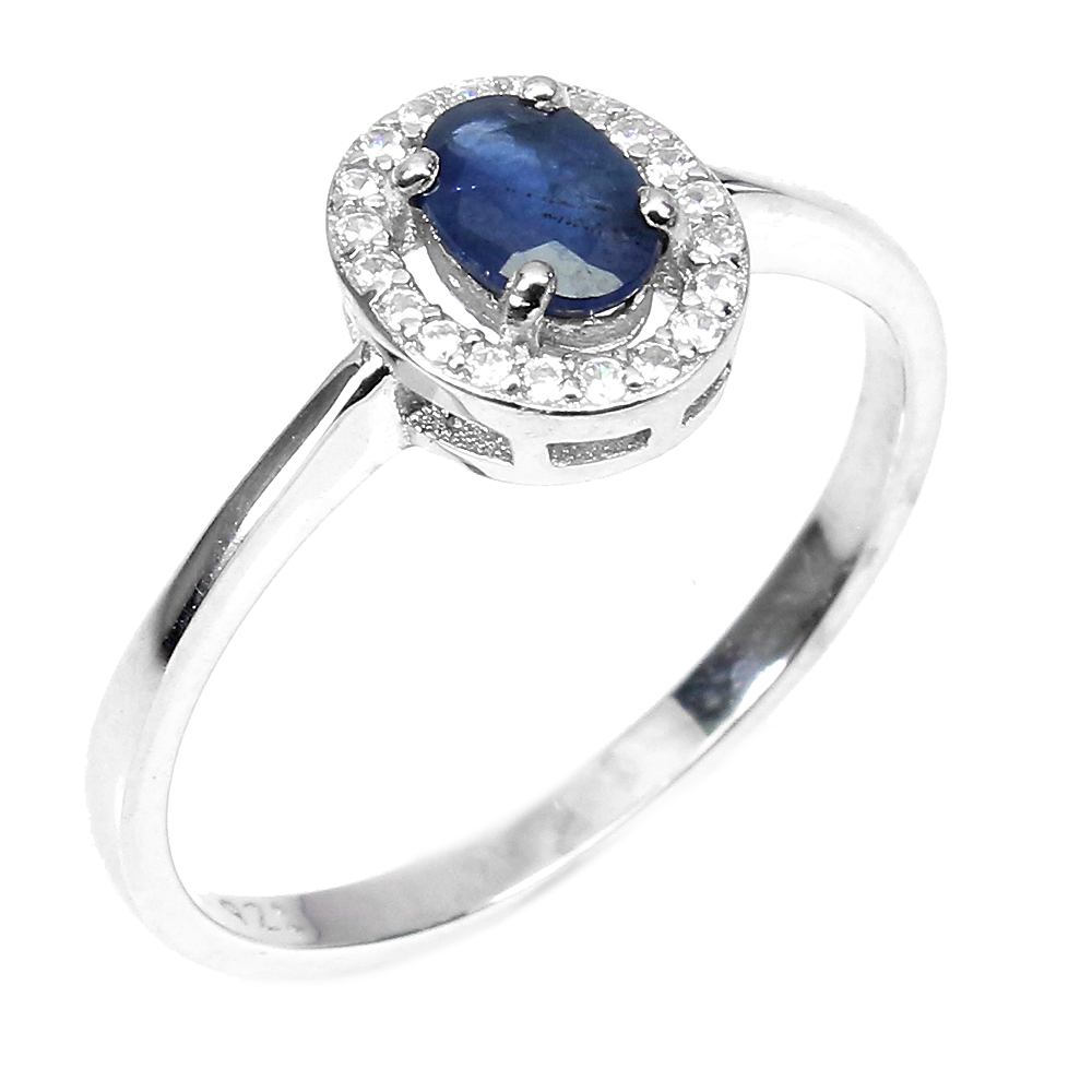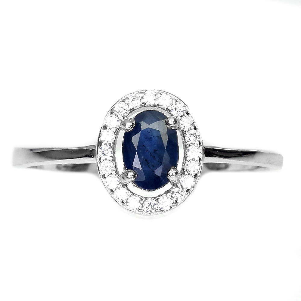 Heated Oval Blue Sapphire Kanchanaburi 6x4mm White Cz 925 Sterling Silver Ring