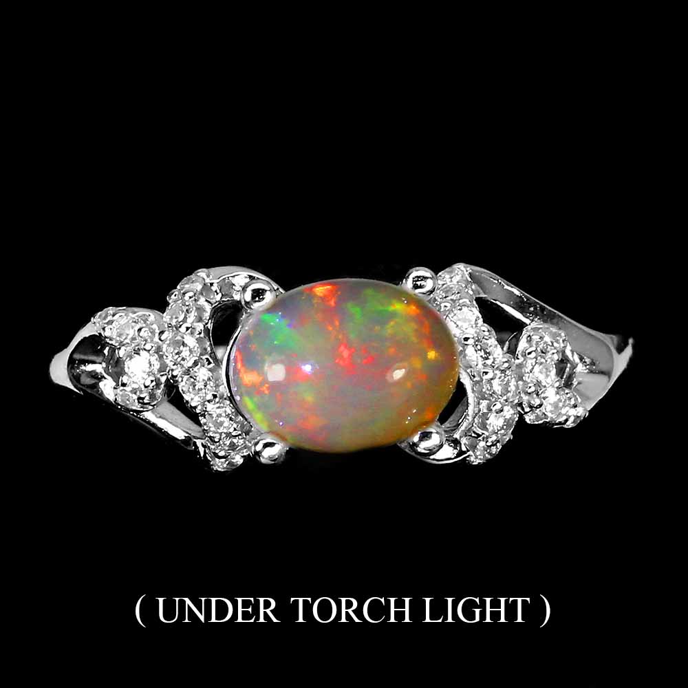 Unheated Oval Fire Opal Rainbow 8x6mm Simulated Cz 925 Sterling Silver Ring 9