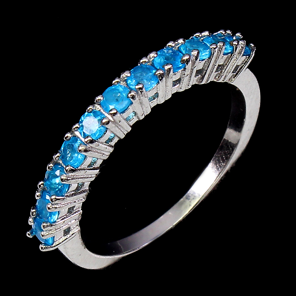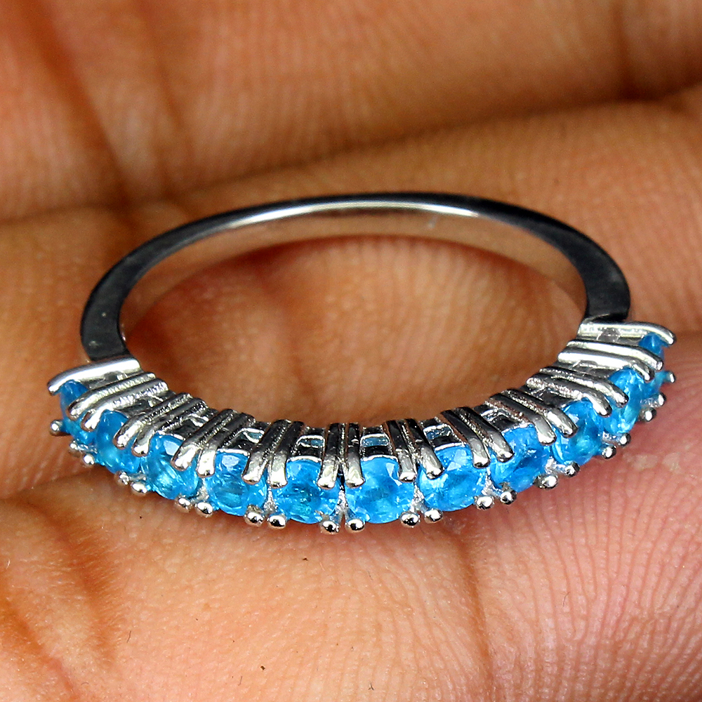 Unheated Round Blue Apatite 3mm 14K White Gold Plate 925 Sterling Silver Ring 7.5