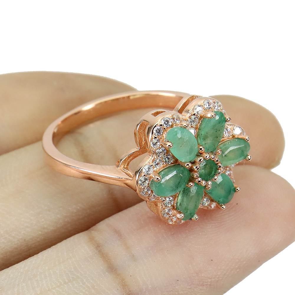 Unheated Oval Green Emerald 5x3mm Simulated Cz 925 Sterling Silver Ring Size 9.5