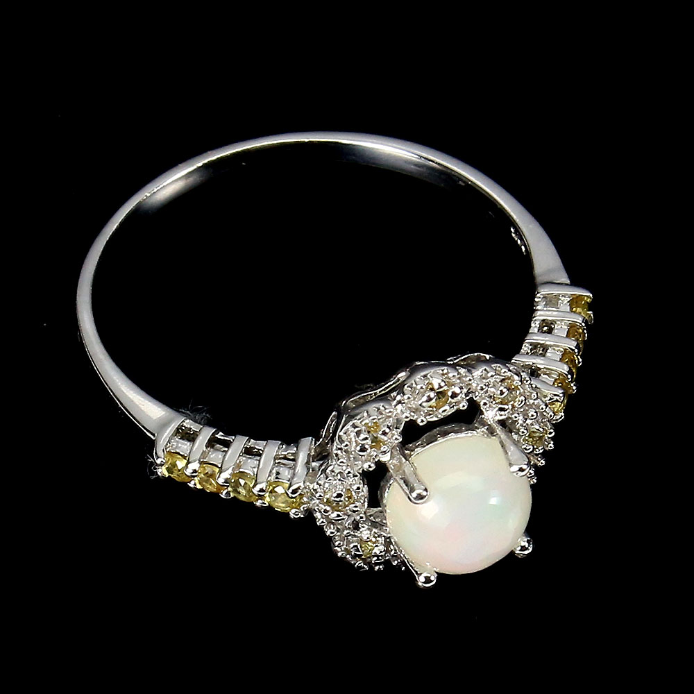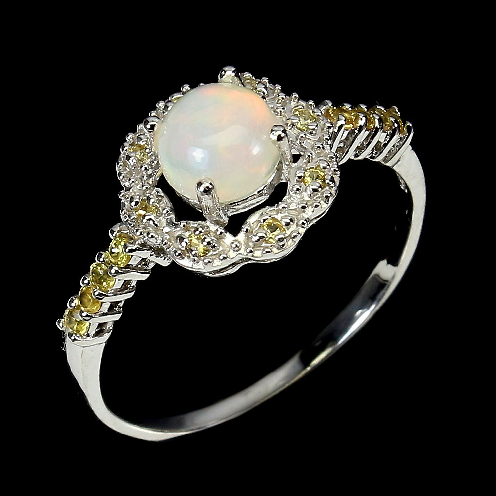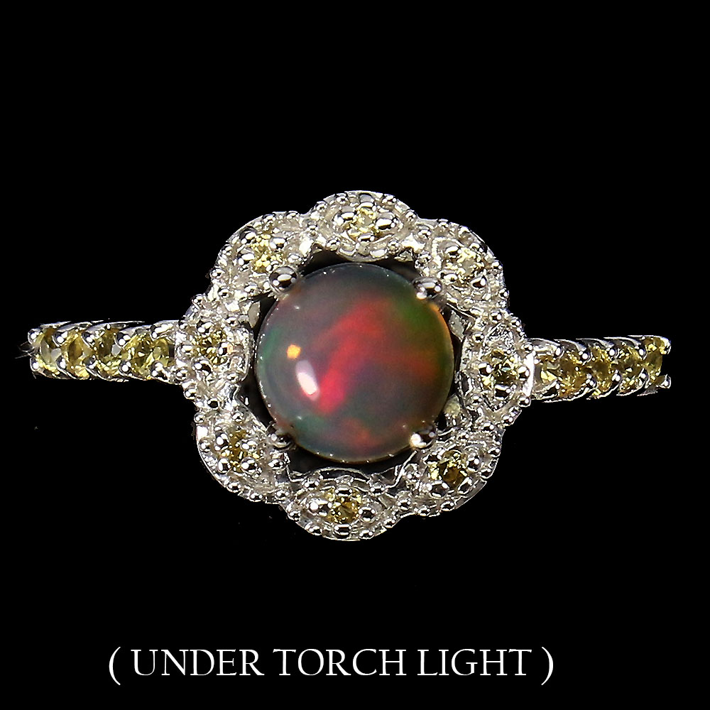 Unheated Round Fire Opal 6mm Sapphire Diamond Cut 925 Sterling Silver Ring 9