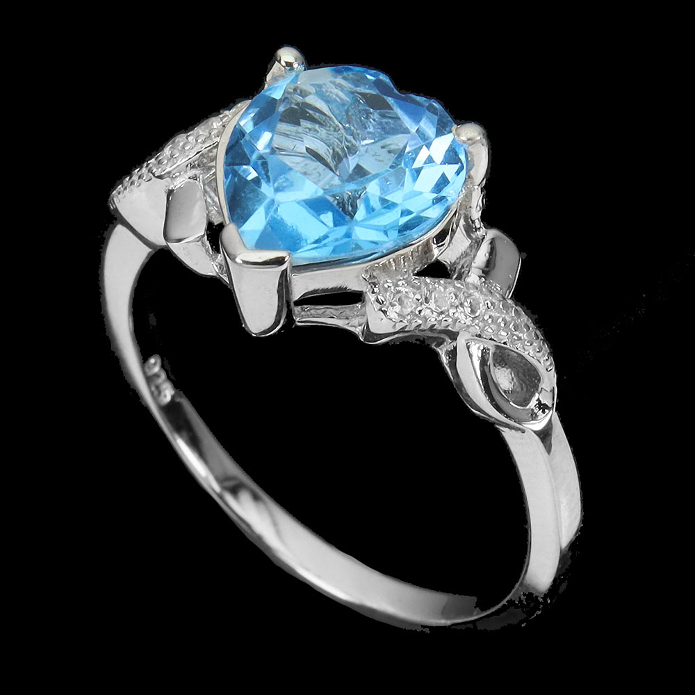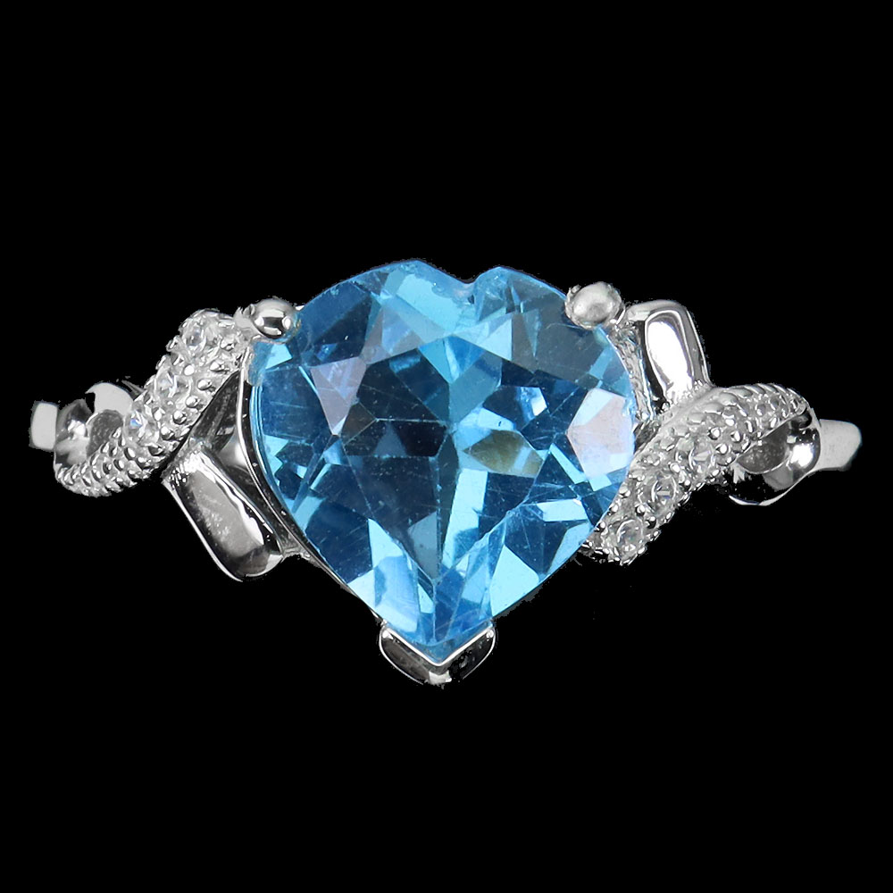 Irradiated Heart Swiss Blue Topaz 9mm Simulated Cz 925 Sterling Silver Ring 8