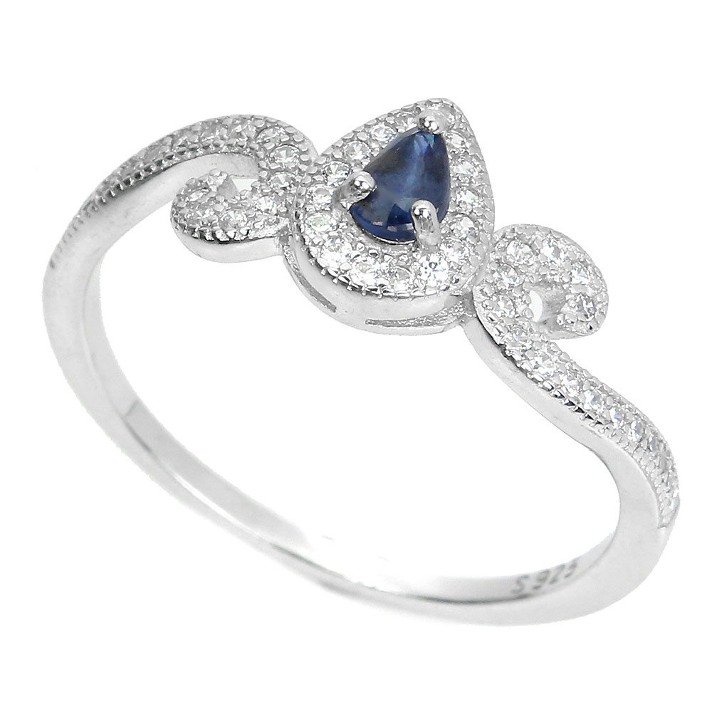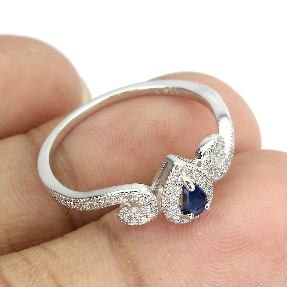 Heated Pear Blue Sapphire 5x3mm Simulated Cz 925 Sterling Silver Ring Size 9