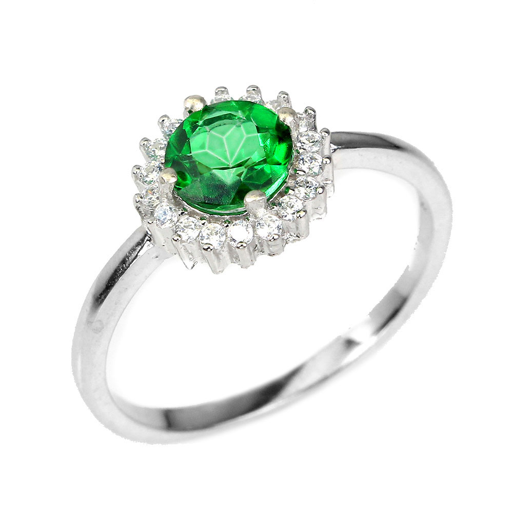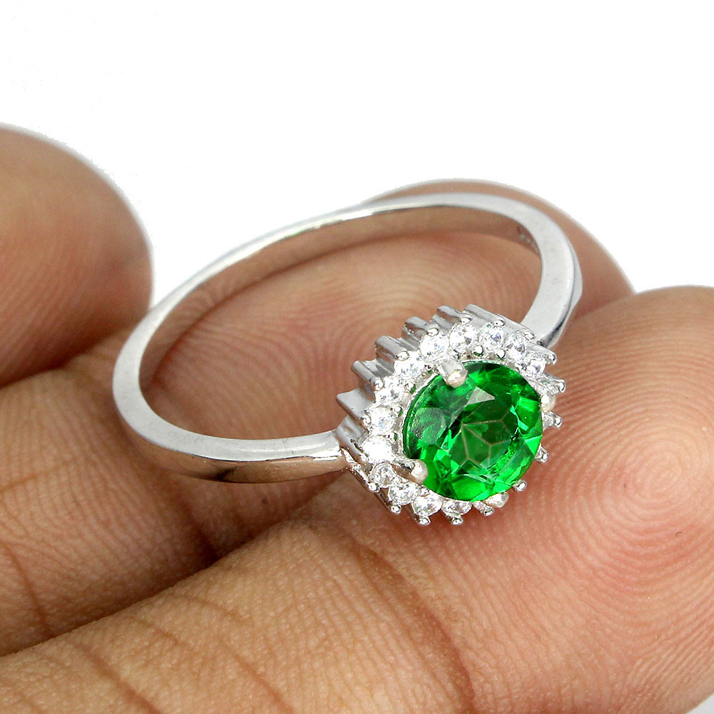 Surface Coated Round Green Topaz 6mm Simulated Cz 925 Sterling Silver Ring 8