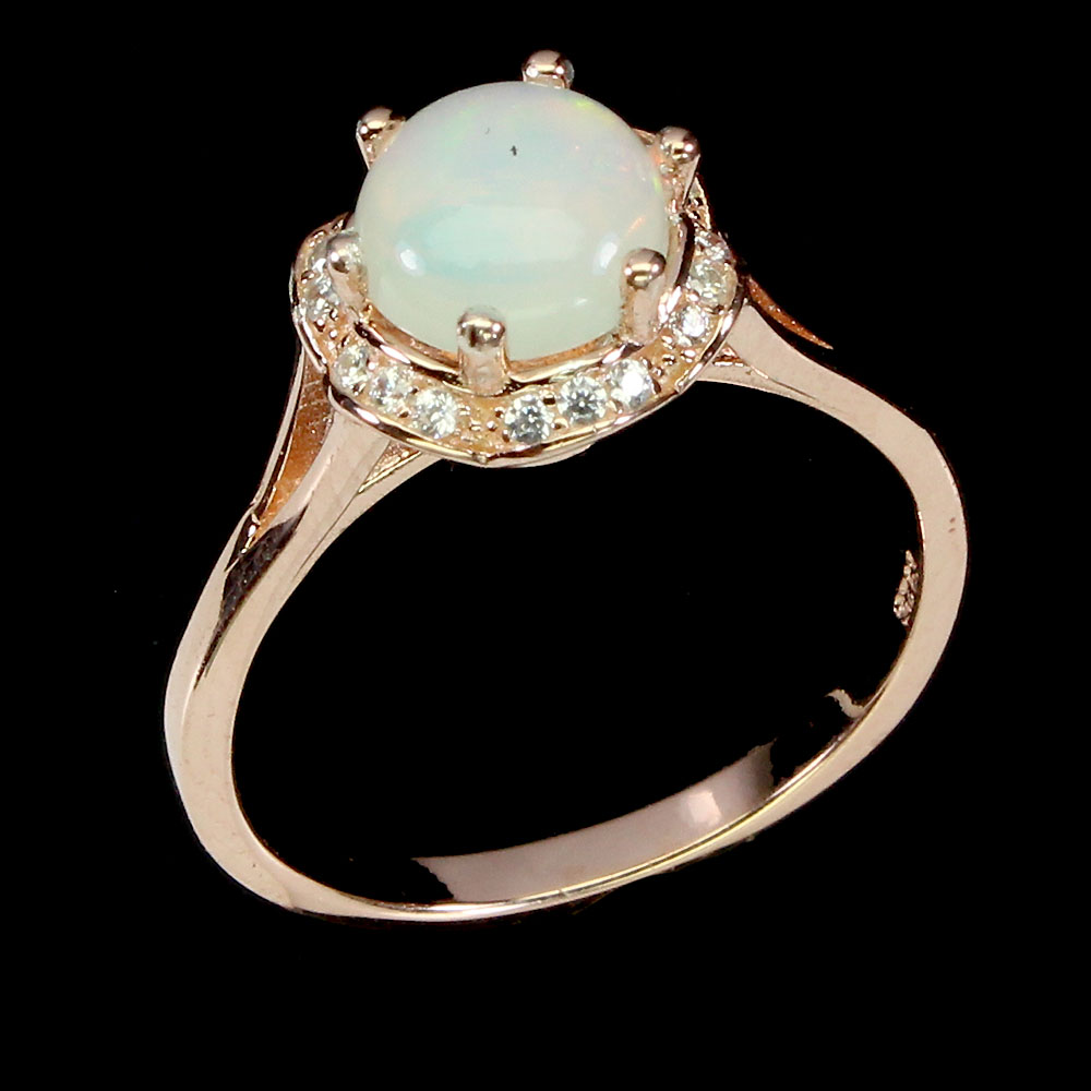 Unheated Round Fire Opal 7mm Simulated Cz 925 Sterling Silver Ring Size 7.5