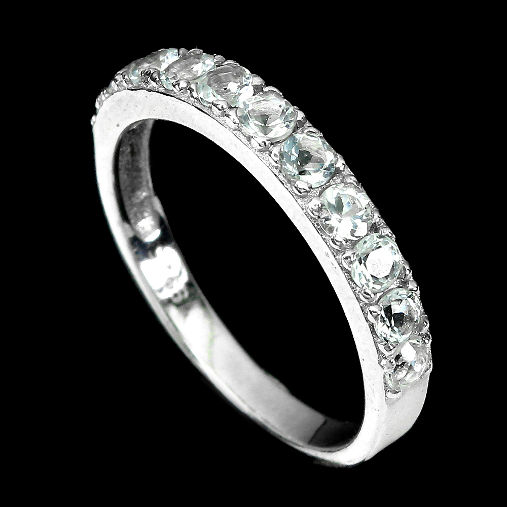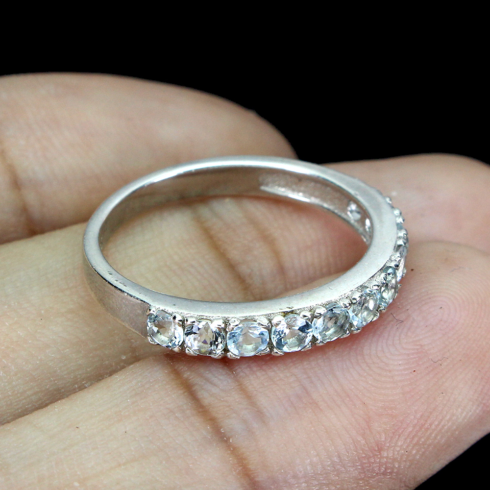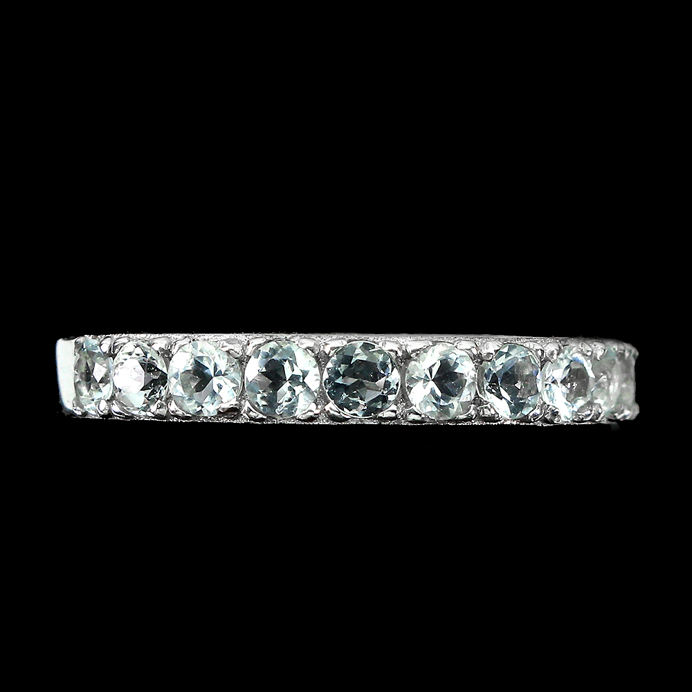 Unheated Round Aquamarine 2.5mm 14K White Gold Plate 925 Sterling Silver Ring 7