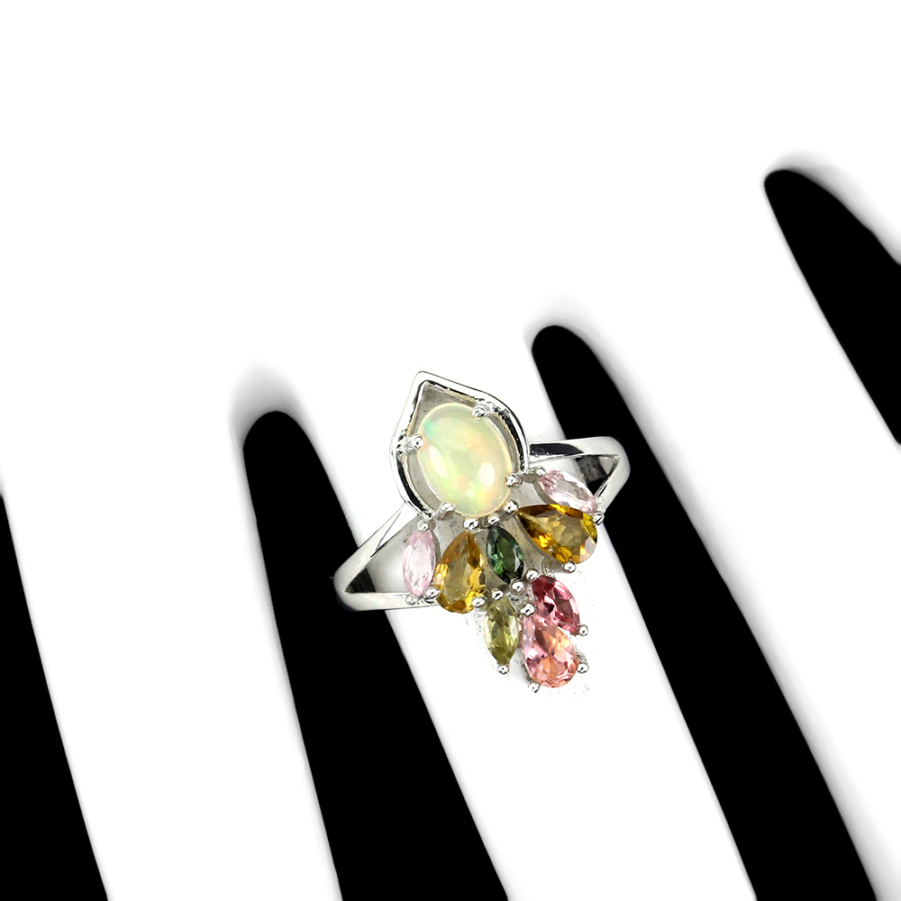 Unheated Oval Fire Opal Rainbow 7x5mm Tourmaline 925 Sterling Silver Ring
