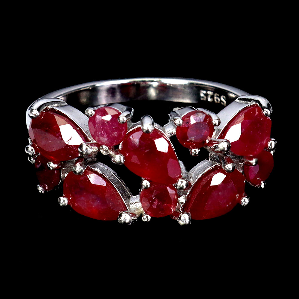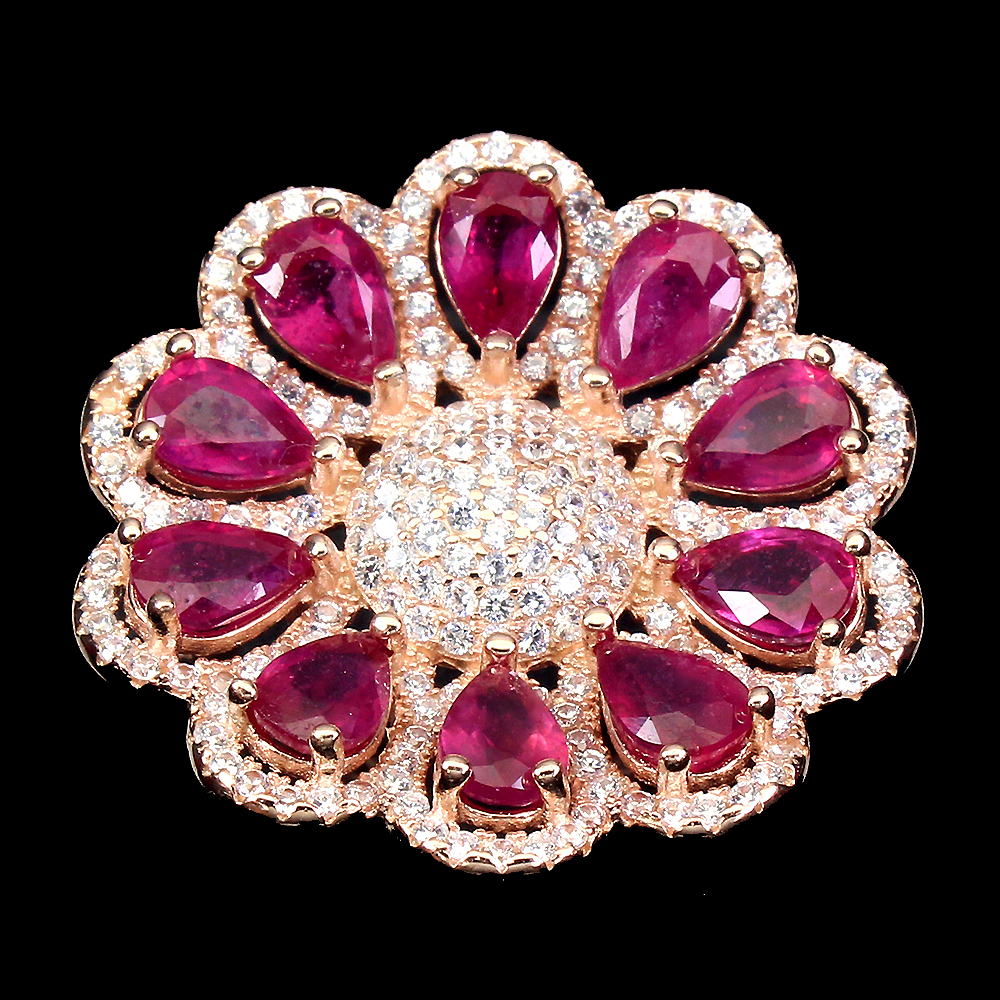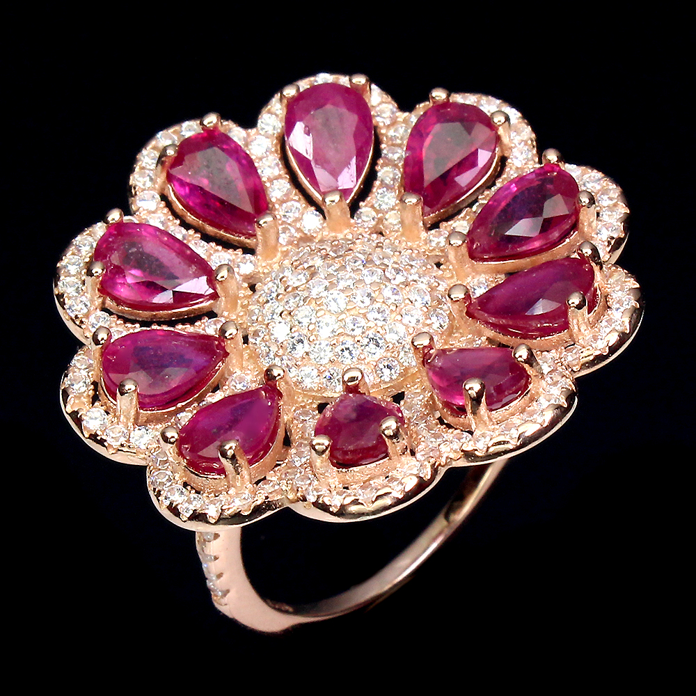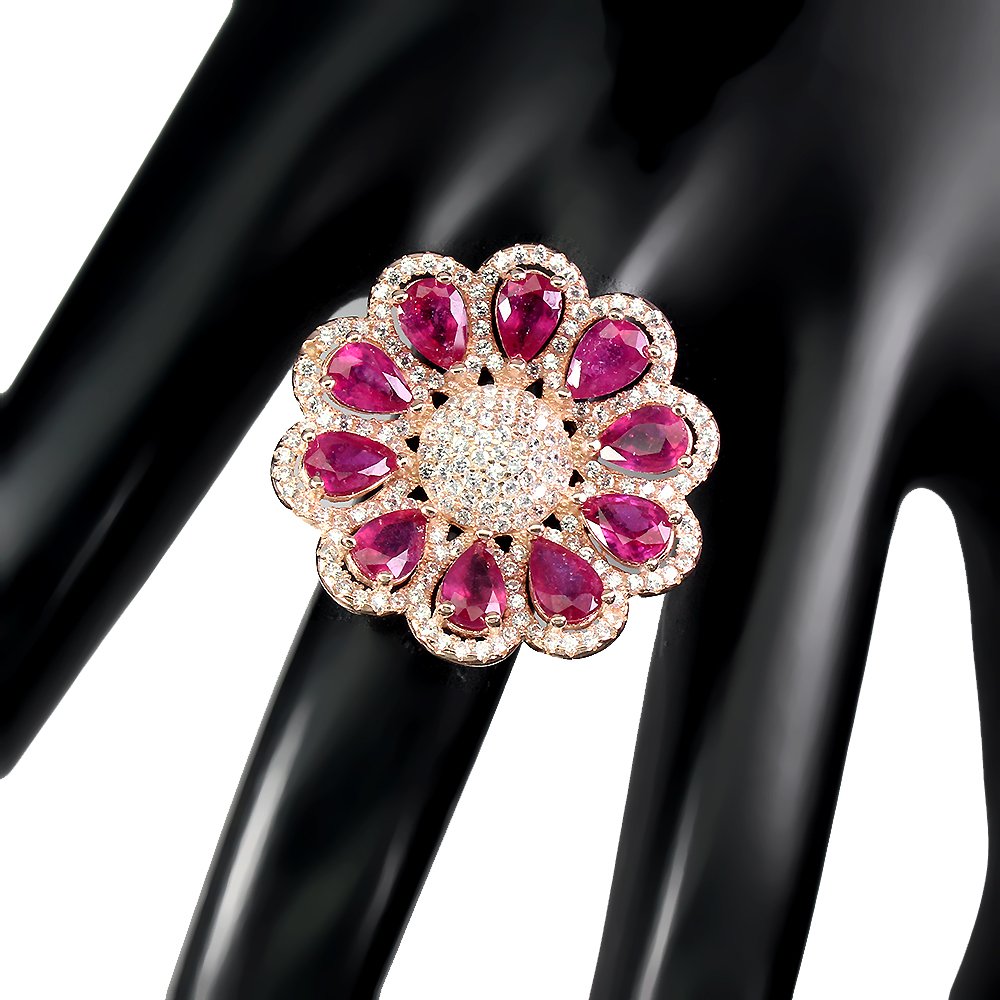 Pear Red Ruby 6x4mm White Cz 14K Rose Gold Plate 925 Sterling Silver Big Ring