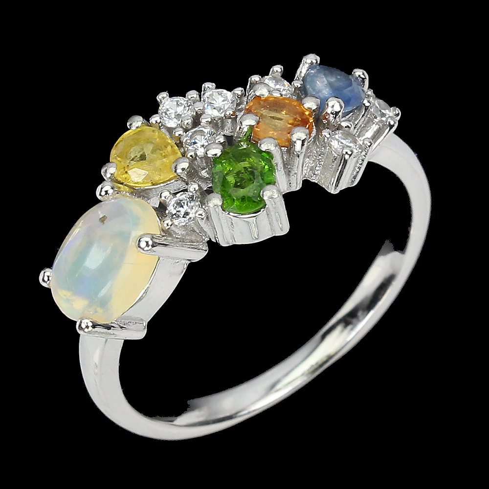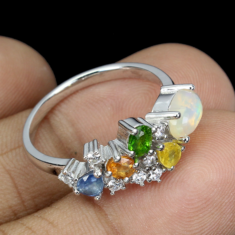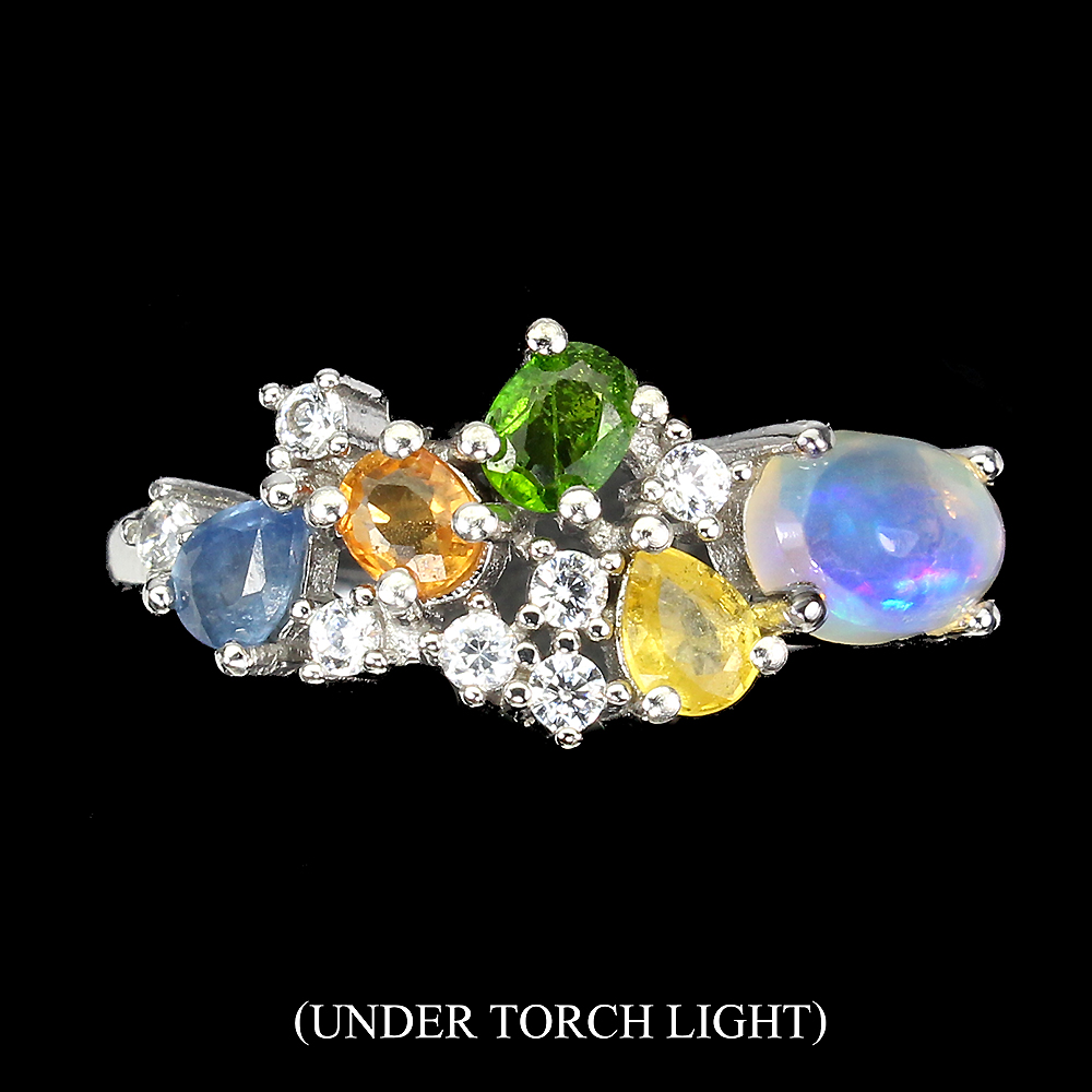 Unheated Oval Fire Opal Rainbow 7x5mm Sapphire Cz 925 Sterling Silver Ring