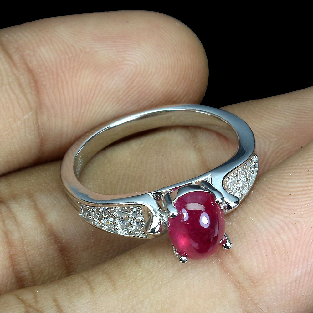 Heated Oval Red Ruby 8x6mm Simulated Cz 925 Sterling Silver Ring Size 8