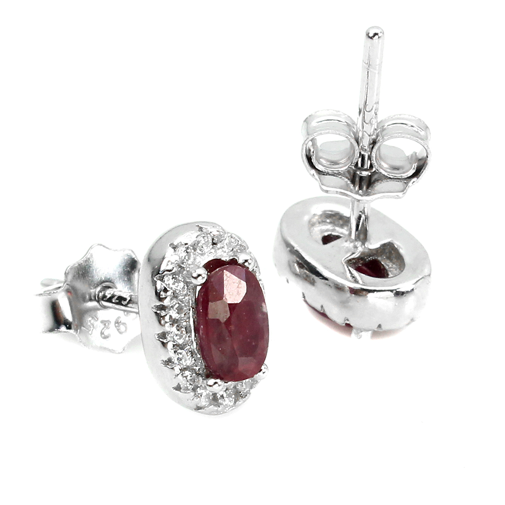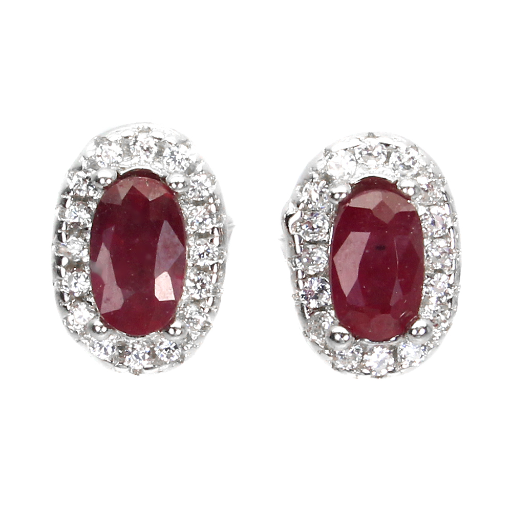 Oval Red Ruby 5x3mm Cz 14K White Gold Plate 925 Sterling Silver Earrings