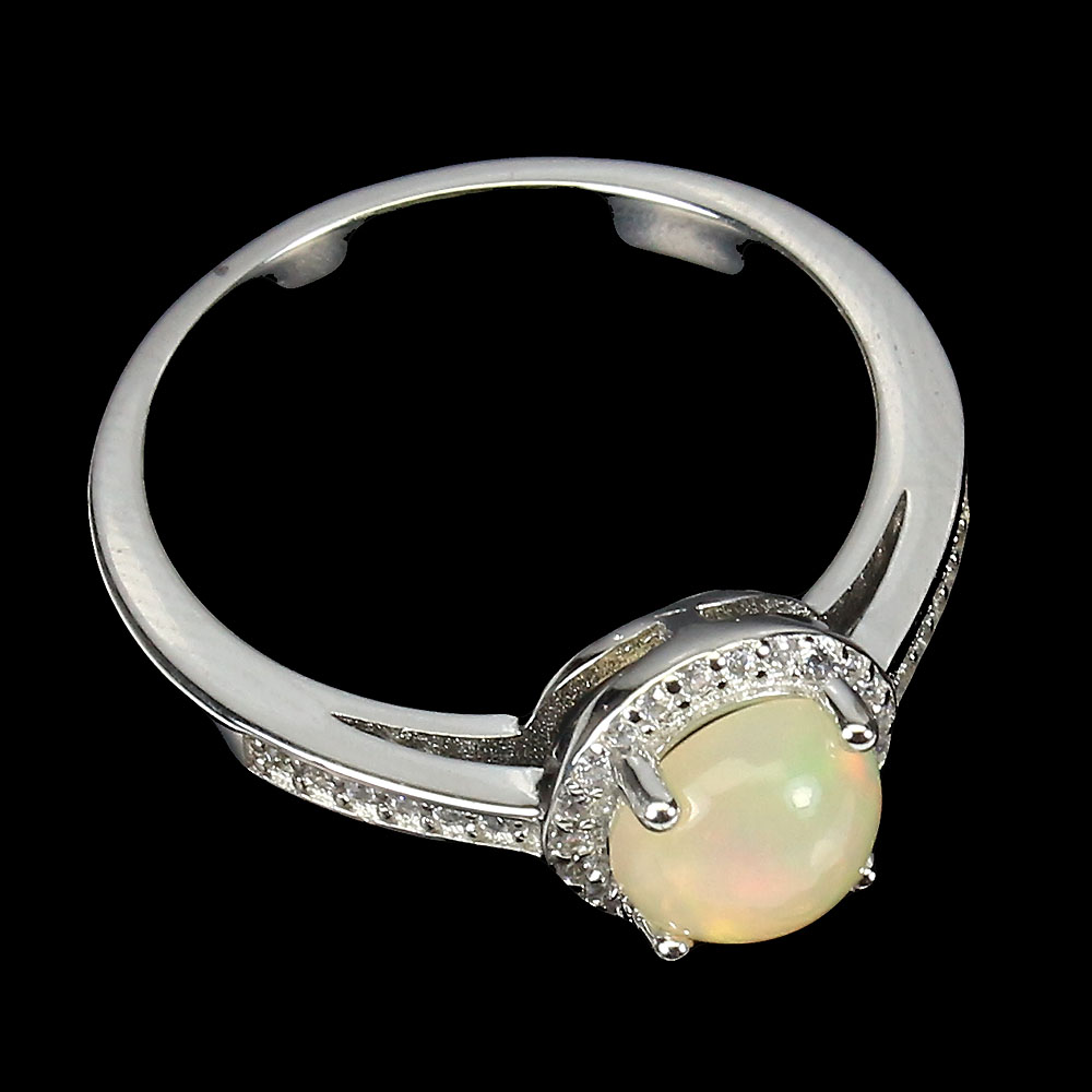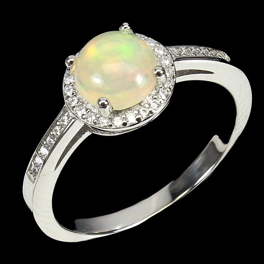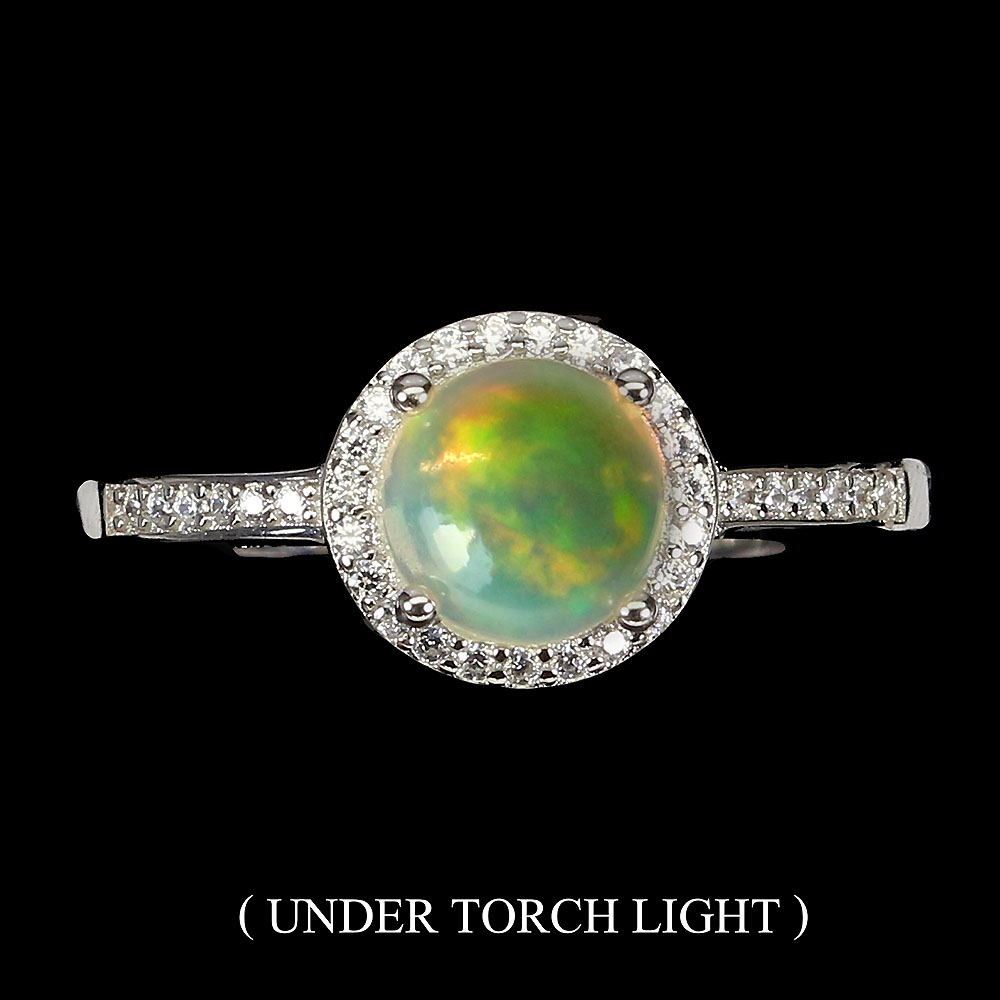 Unheated Round Fire Opal Rainbow 7mm Simulated Cz 925 Sterling Silver Ring 8.5