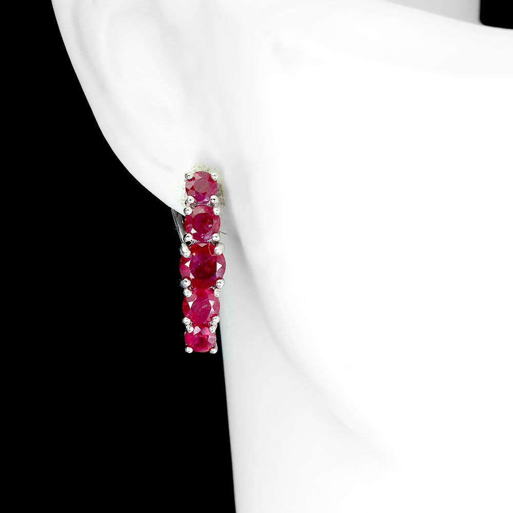 Heated Round Red Ruby 5mm 14K White Gold Plate 925 Sterling Silver Earrings