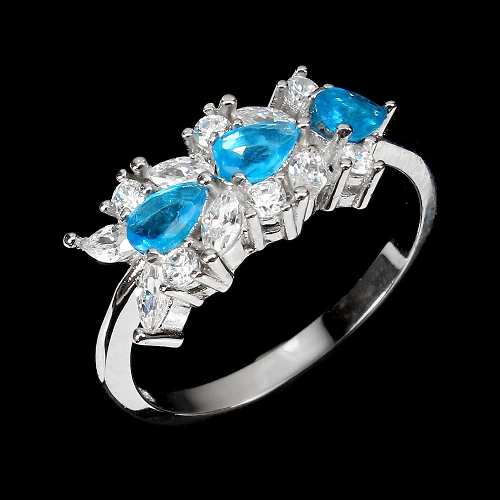 Unheated Pear Paraiba Blue Apatite 5x3mm Simulated Cz 925 Sterling Silver Ring