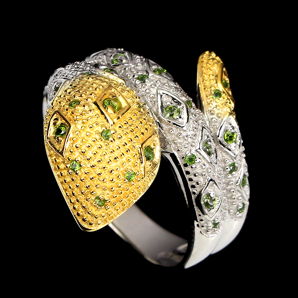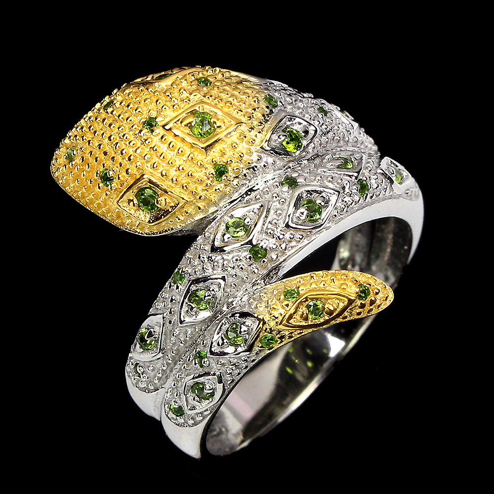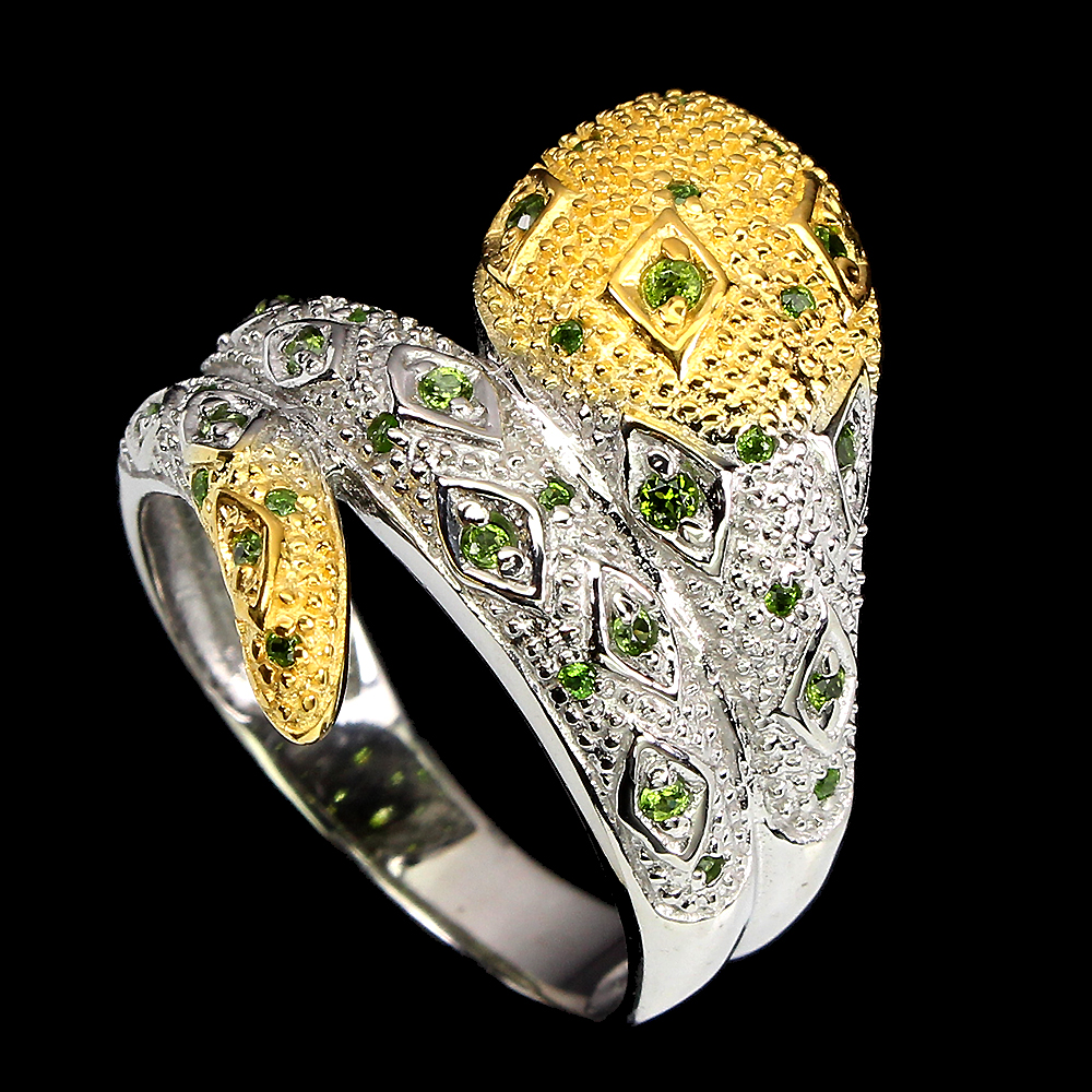 Unheated Round Green Chrome Diopside 2mm 925 Sterling Silver Cobra Ring Size 9