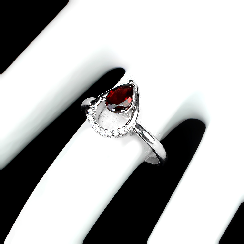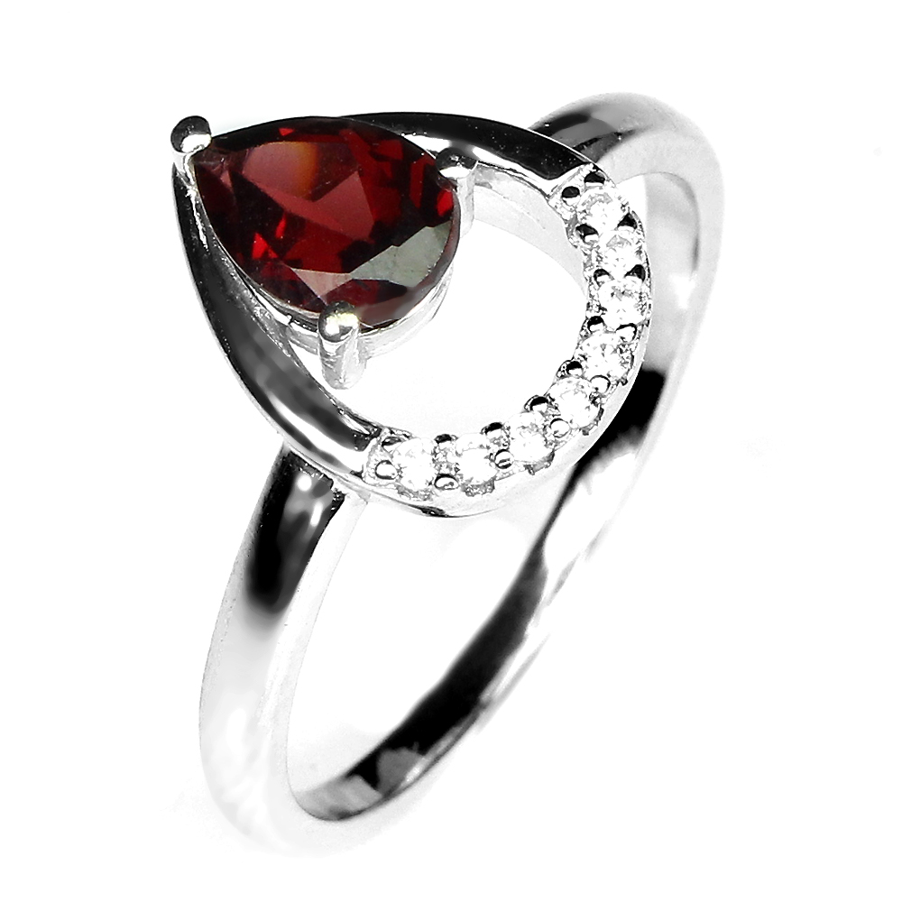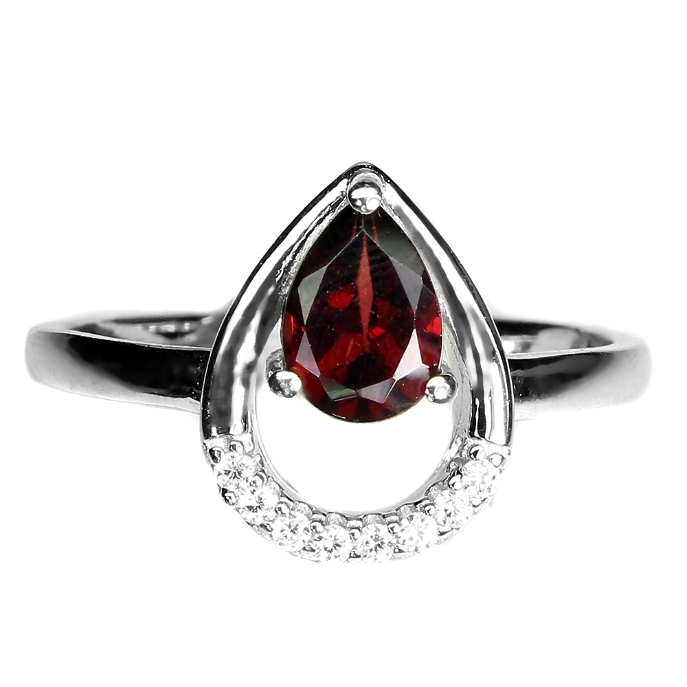 Unheated Pear Mozambique Garnet 7x5mm White Cz 925 Sterling Silver Ring