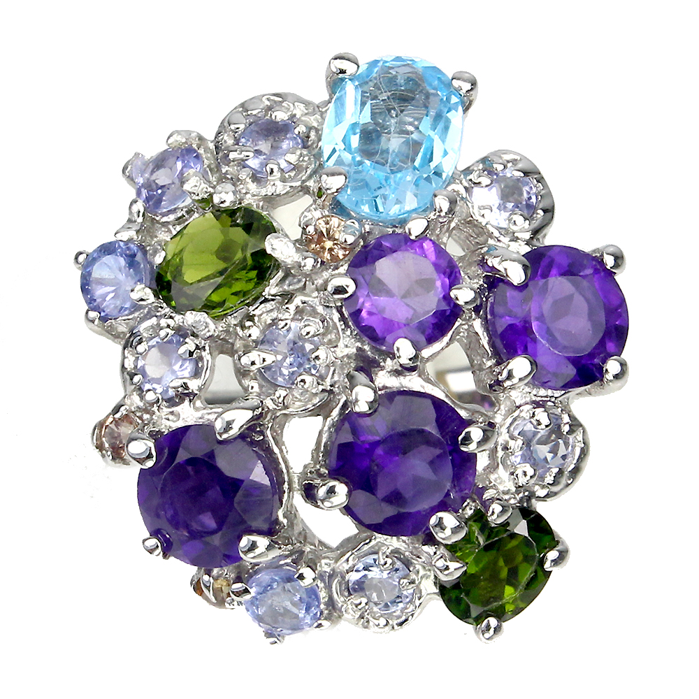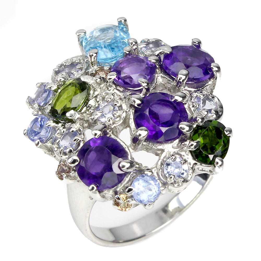 Oval Swiss Blue Topaz Amethyst Tanzanite Gems 925 Sterling Silver Ring Size 7