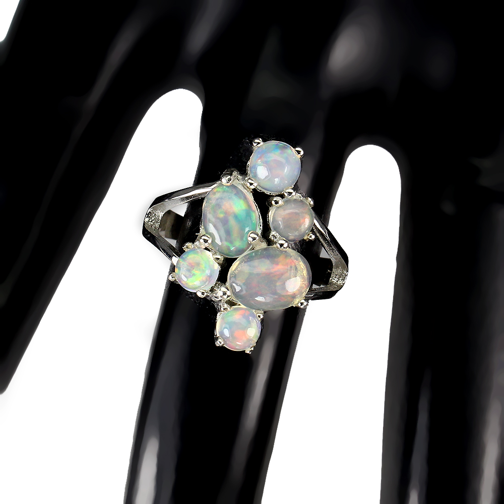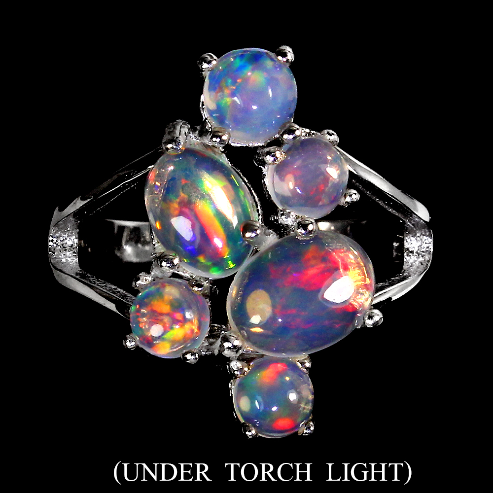 Unheated Oval Fire Opal Rainbow Full Flash 8x6mm 925 Sterling Silver Ring