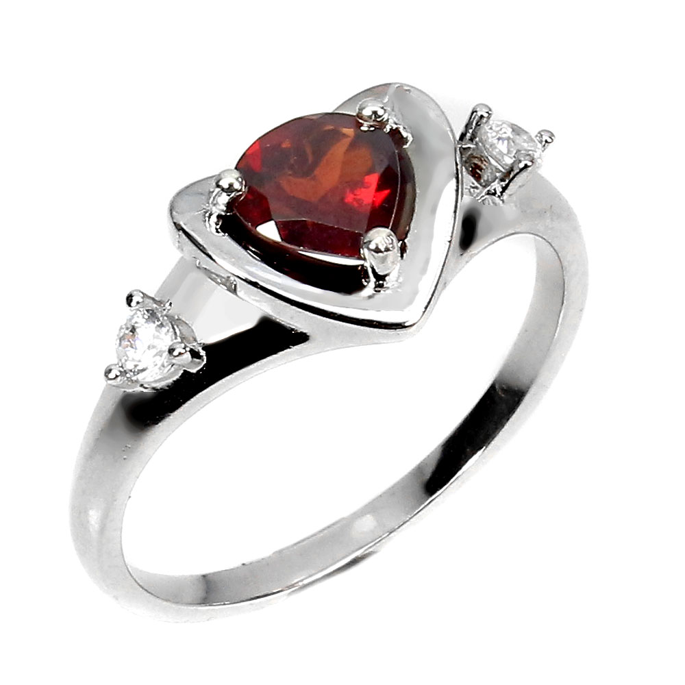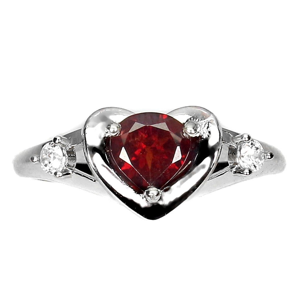Unheated Heart Mozambique Garnet 6mm White Cz 925 Sterling Silver Ring