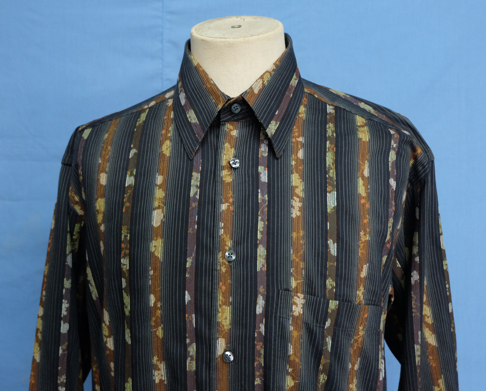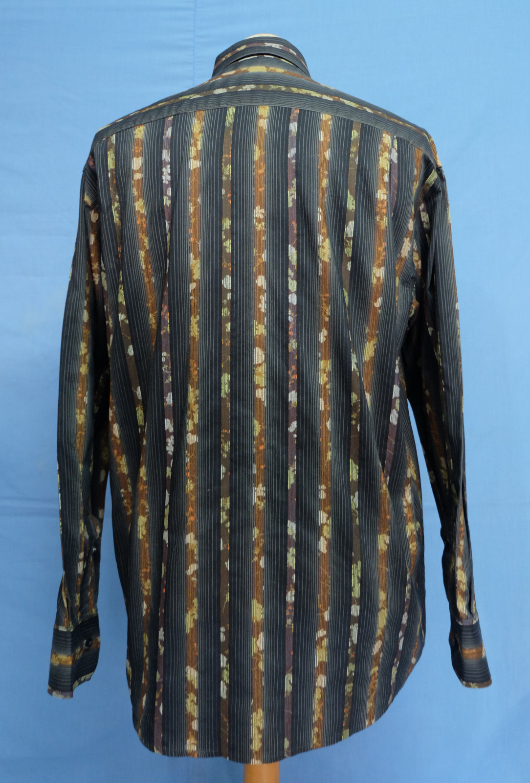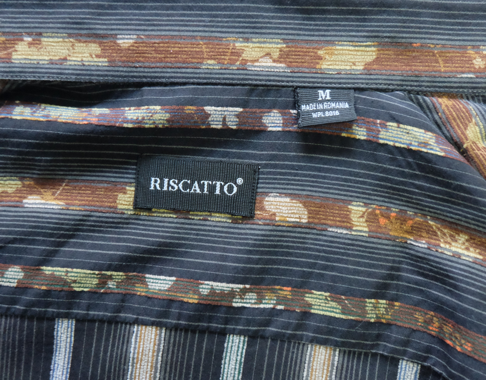 Fabulous Riscatto multicolor striped men's casual shirt long sleeves with buttons front authenticity guaranteed. The shirt has point collar, single chest pocket with 7 mother of thick pearl buttons closure on front. The color is multicolor with striped pattern. Fabric is 55% cotton, 45% polyester. The shirt is pre-owned still in excellent condition, there are no holes, tears, stains. It has been laundered clean and fresh ready to wear. Don't miss out cool and awesome shirt.