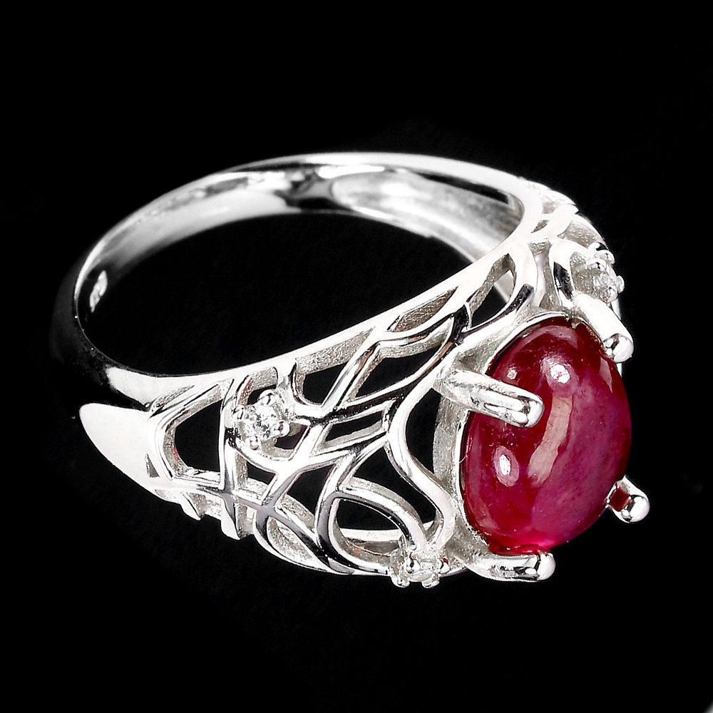 Oval Red Ruby 10x8mm White Cz 14K White Gold Plate 925 Sterling Silver Ring