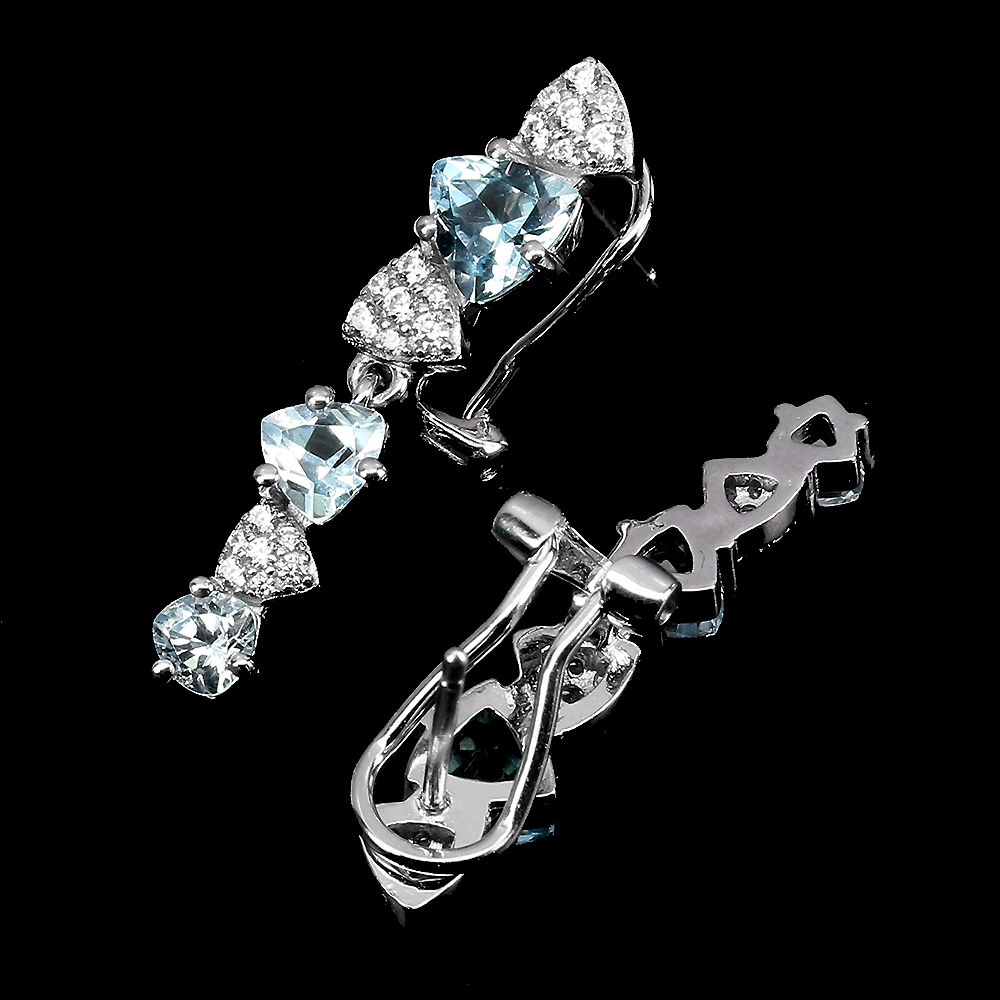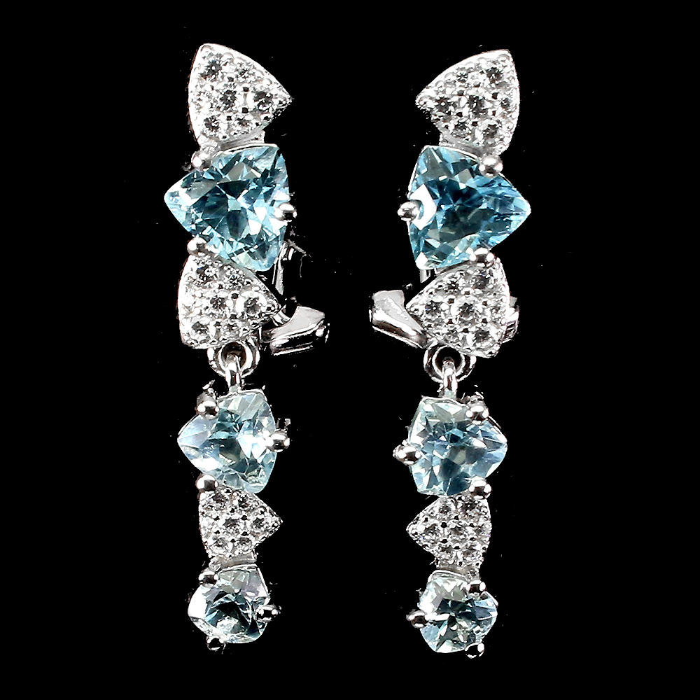 Trilliant Sky Blue Topaz 6x6mm Cz White Gold Plate 925 Sterling Silver Earrings
