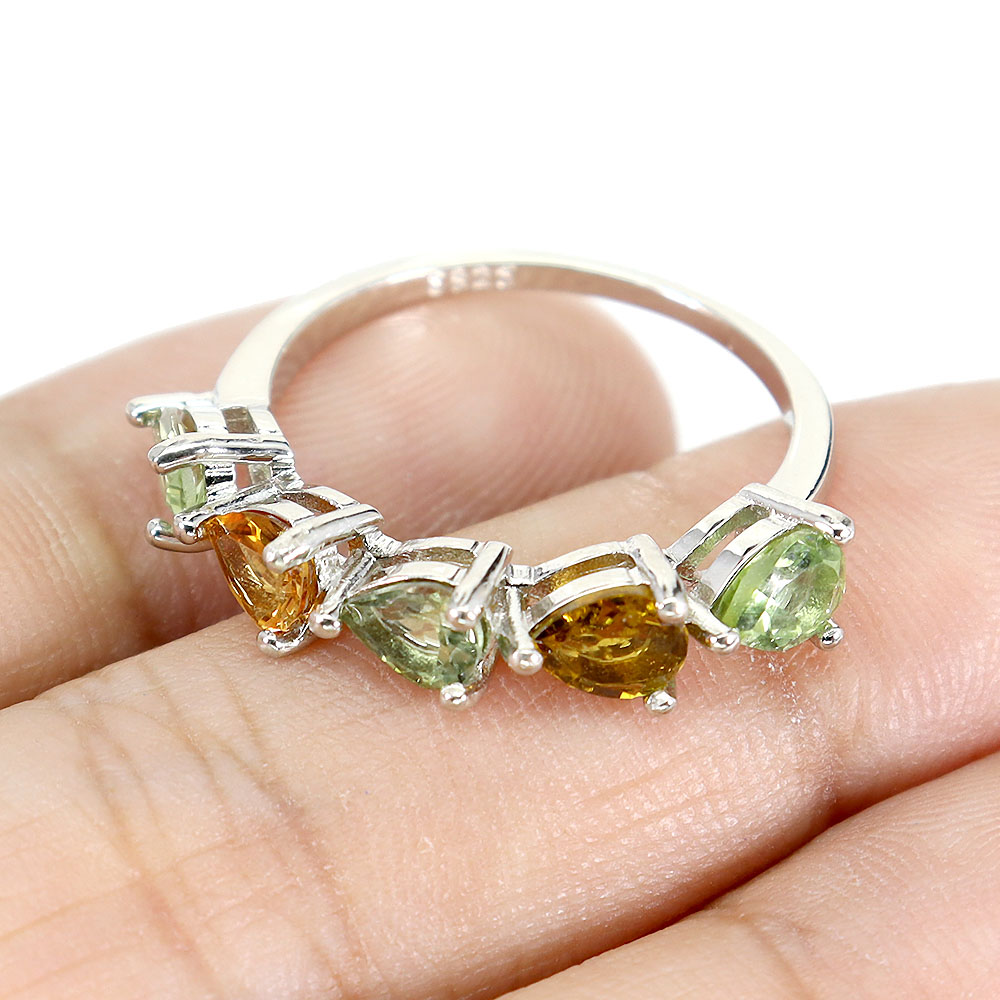 Unheated Pear Tourmaline Multi Color 5x4mm 925 Sterling Silver Ring Size 7