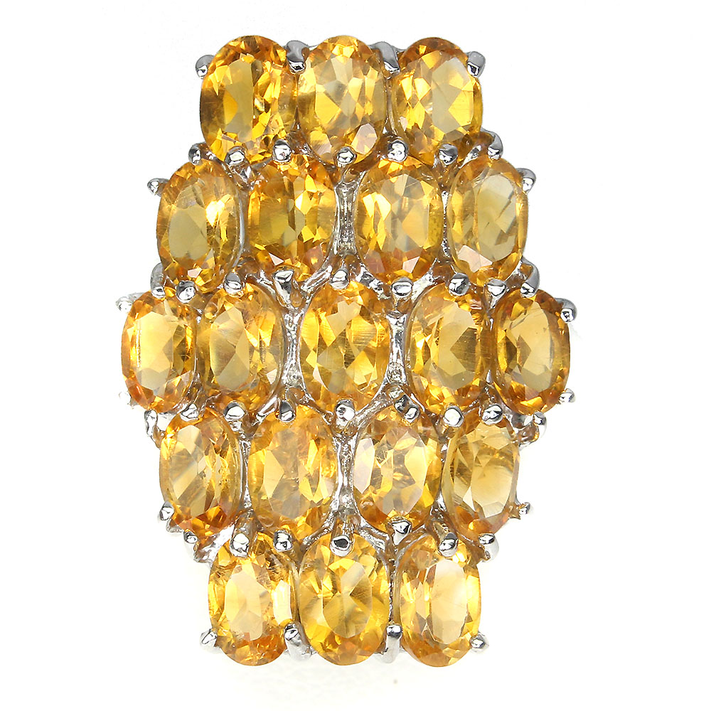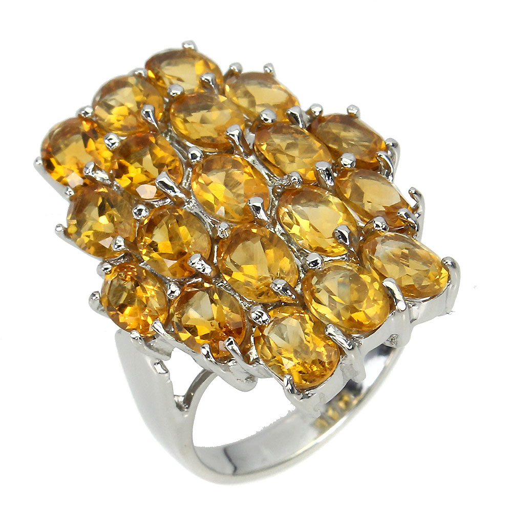 Unheated Oval Citrine 6x4mm 14K White Gold Plate 925 Sterling Silver Ring Size 8