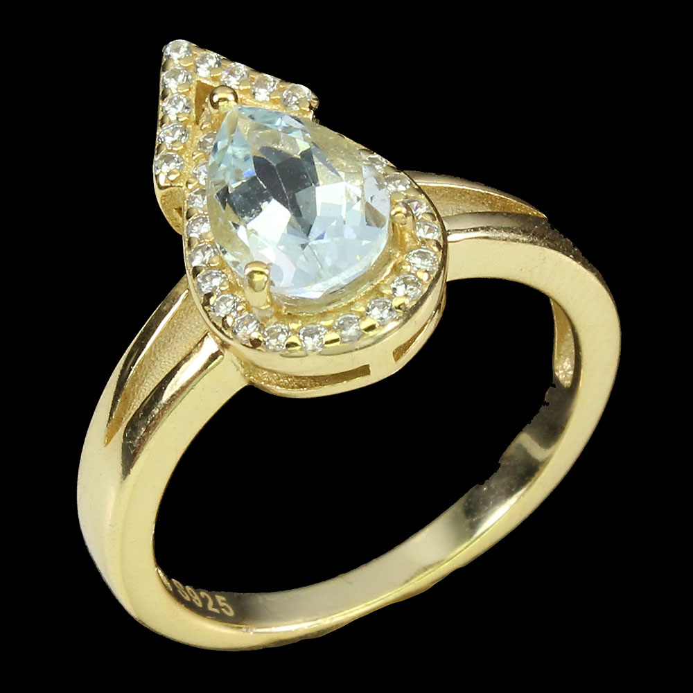 Unheated Pear Blue Aquamarine 9x6mm Simulated Cz 925 Sterling Silver Ring 8
