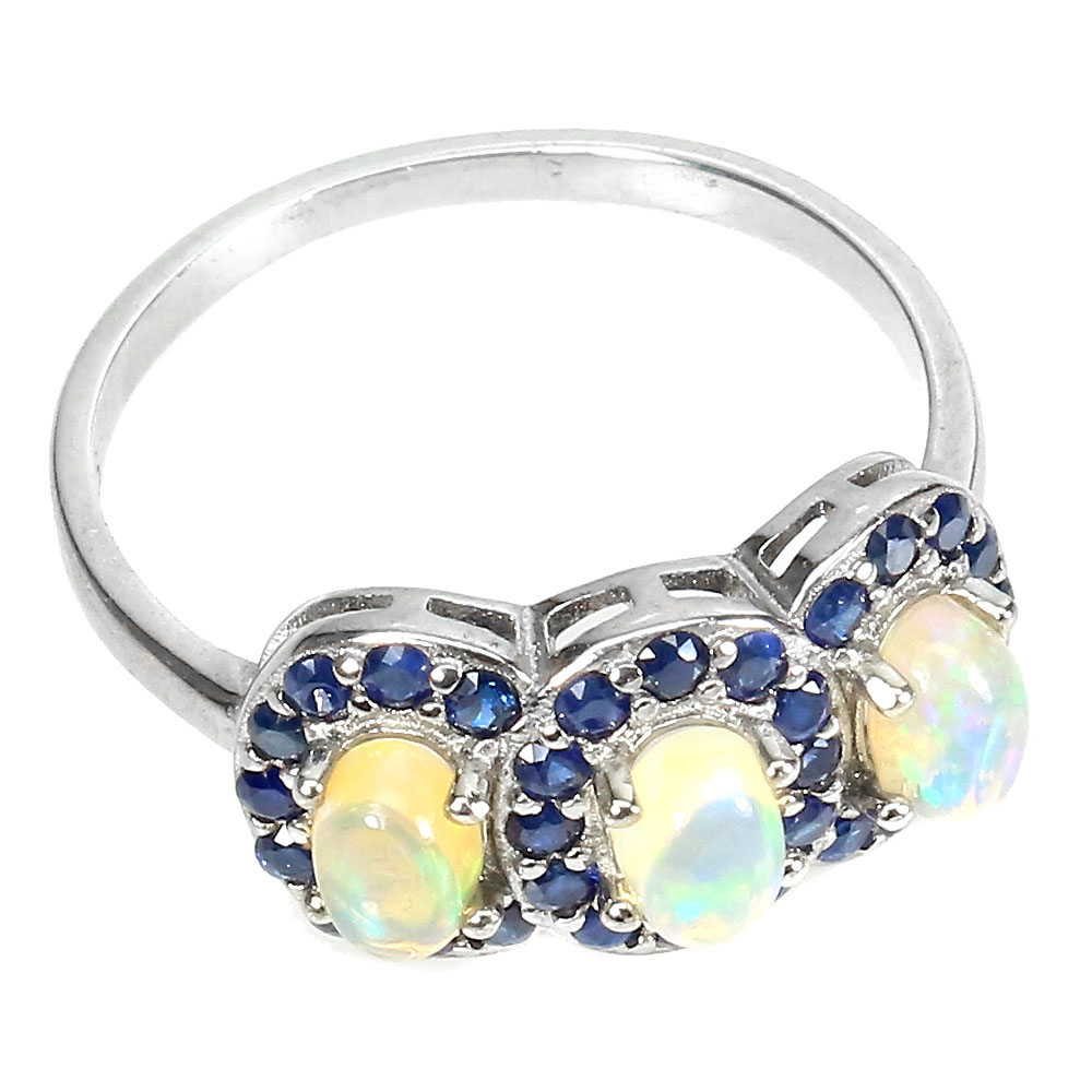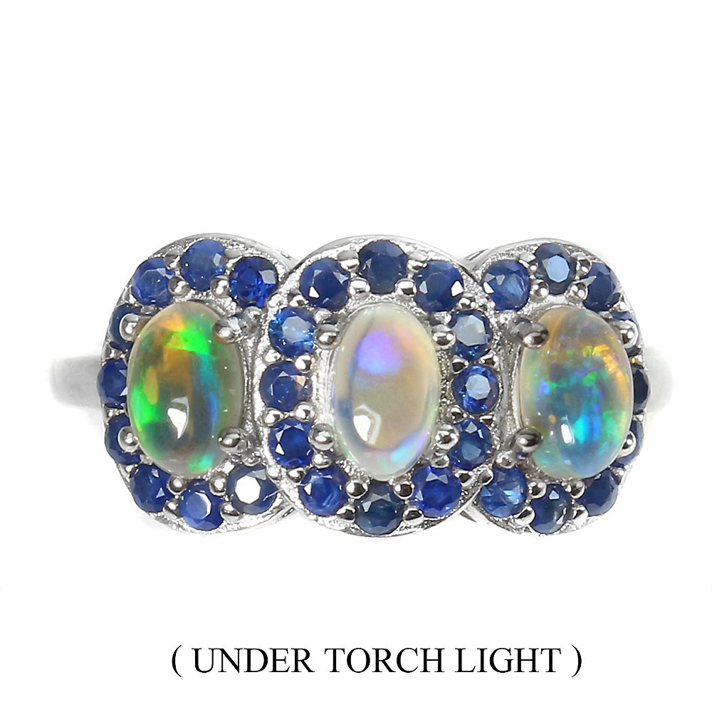 Unheated Oval Fire Opal 5x3mm Sapphire Diamond Cut 925 Sterling Silver Ring 6.5