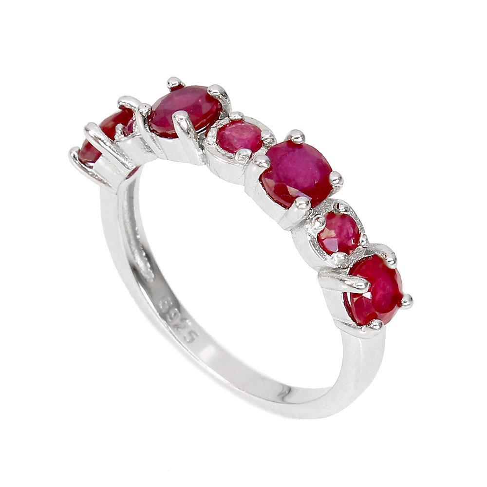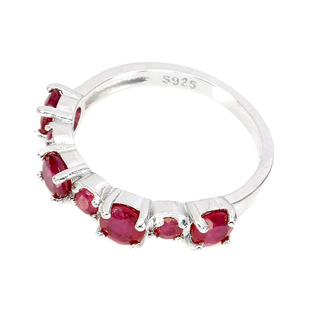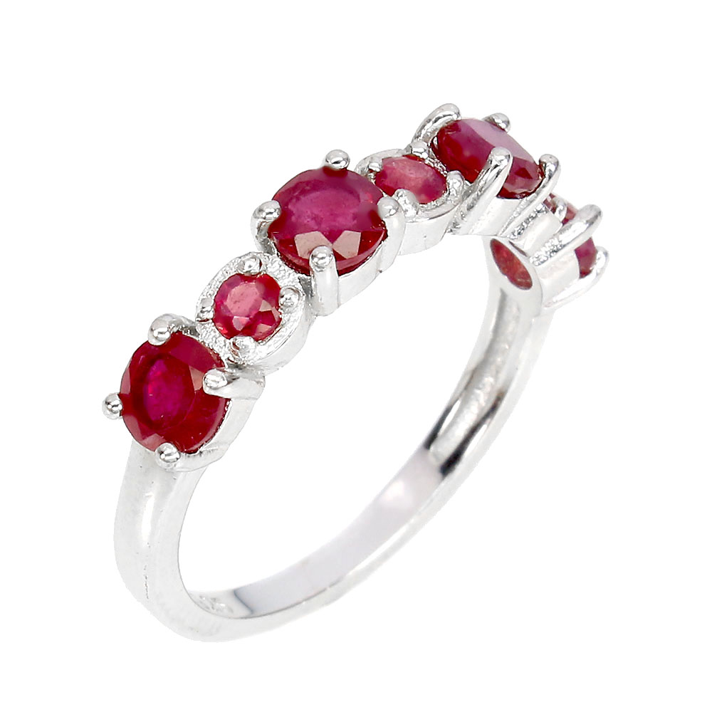 Heated Round Red Ruby 4mm 14K White Gold Plate 925 Sterling Silver Ring Size 8