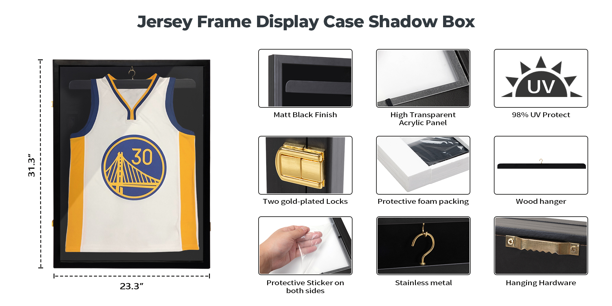 With high transparency PS board, this Jersey Display Frame is perfect for storing and showing your jerseys, photos, crafts or other memorabilia clearly.
