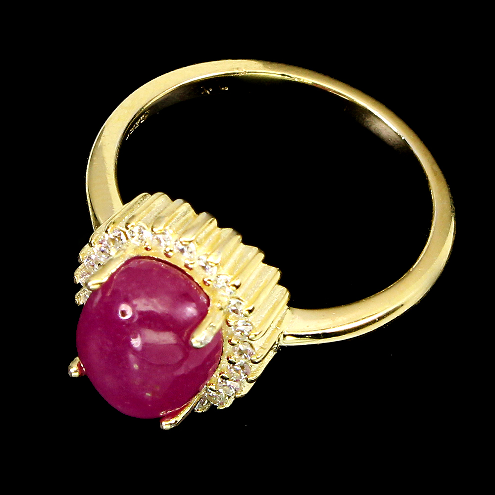 Oval Red Ruby 9x7mm Cz 14K Yellow Gold Plate 925 Sterling Silver Ring Size 7