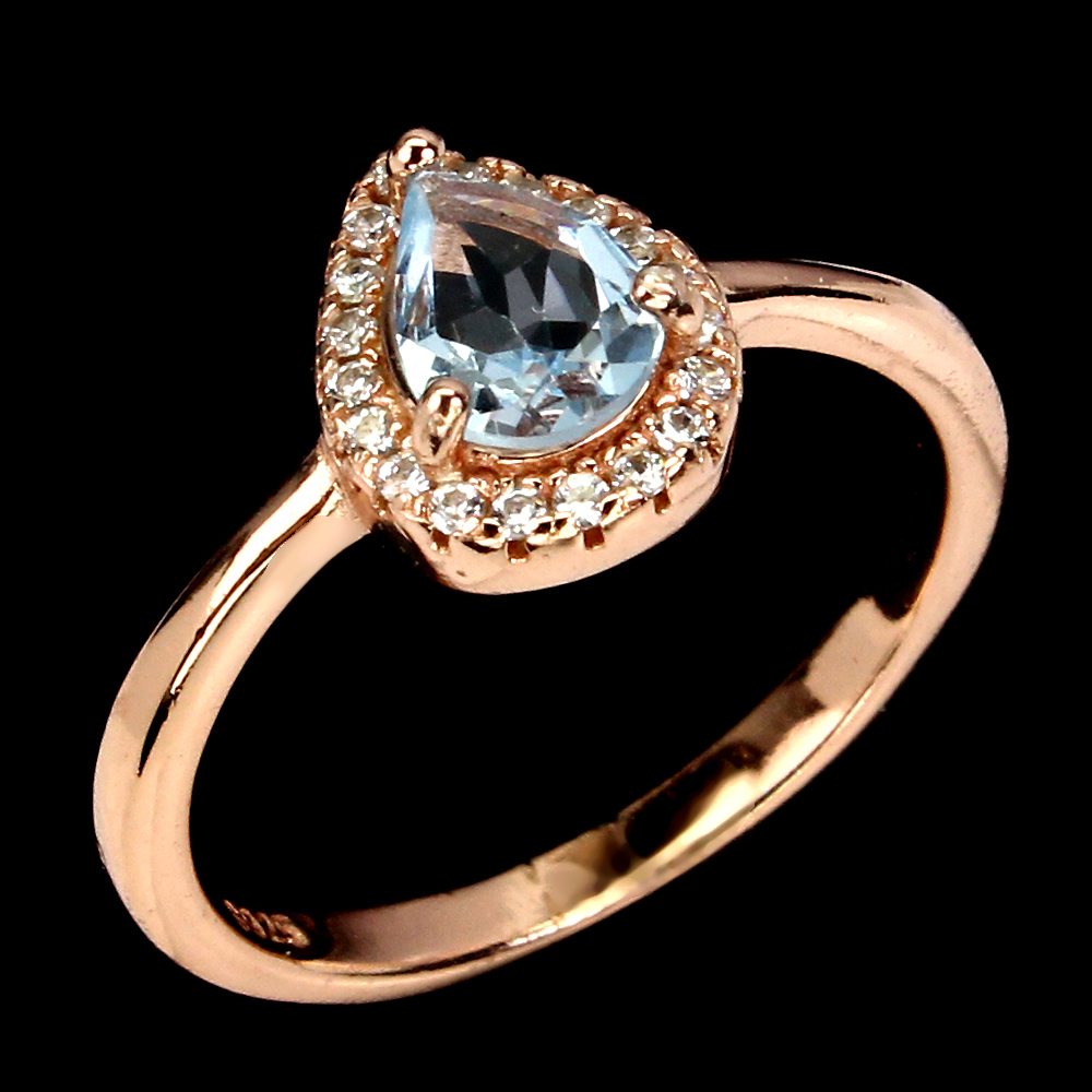 Unheated Pear Aquamarine 7x5mm Rose Gold Plate Cz 925 Sterling Silver Ring 7