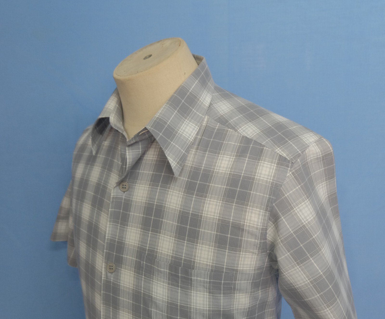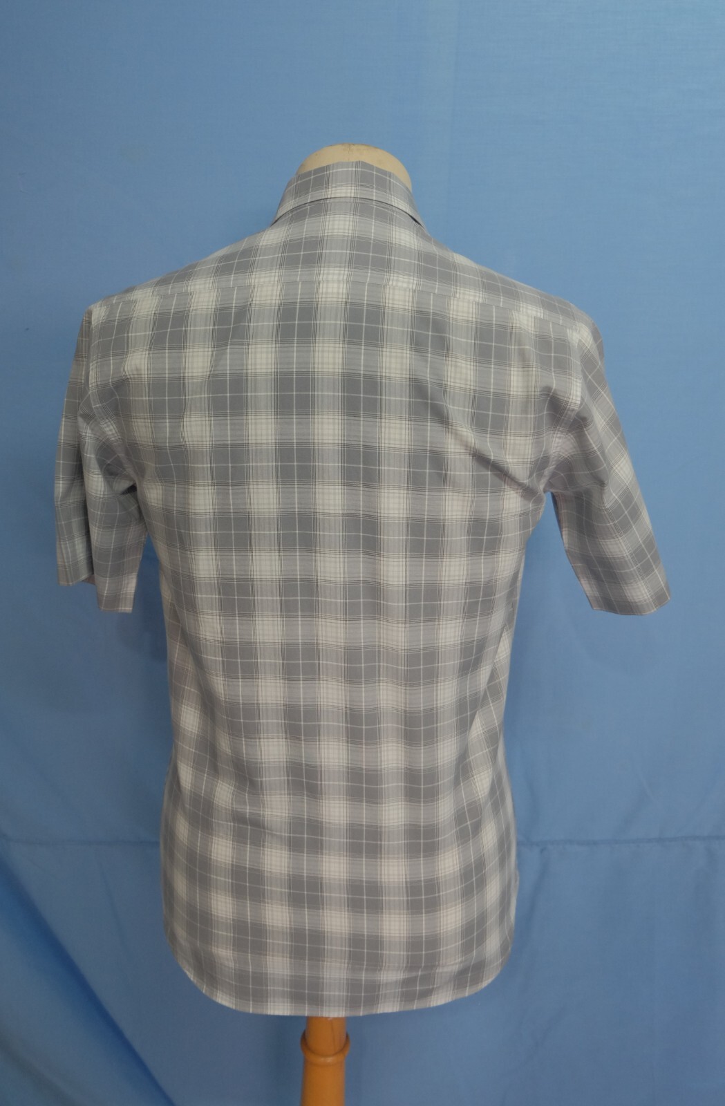 Awesome Agnes b. Homme Paris solid gray men's casual shirt short sleeves with buttons front authenticity guaranteed. The shirt has point collar with single chest pocket on left, 6 buttons closure on front. The color is white, gray with plaid pattern. Fabric is 100% cotton. The shirt is pre-owned still in excellent condition, there are no holes, tears, stains. It has been laundered clean and fresh ready to wear. Don't miss out cool and awesome shirt.
