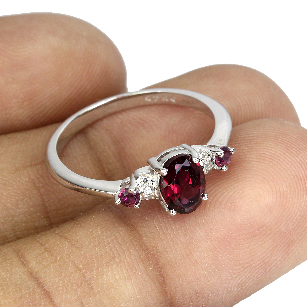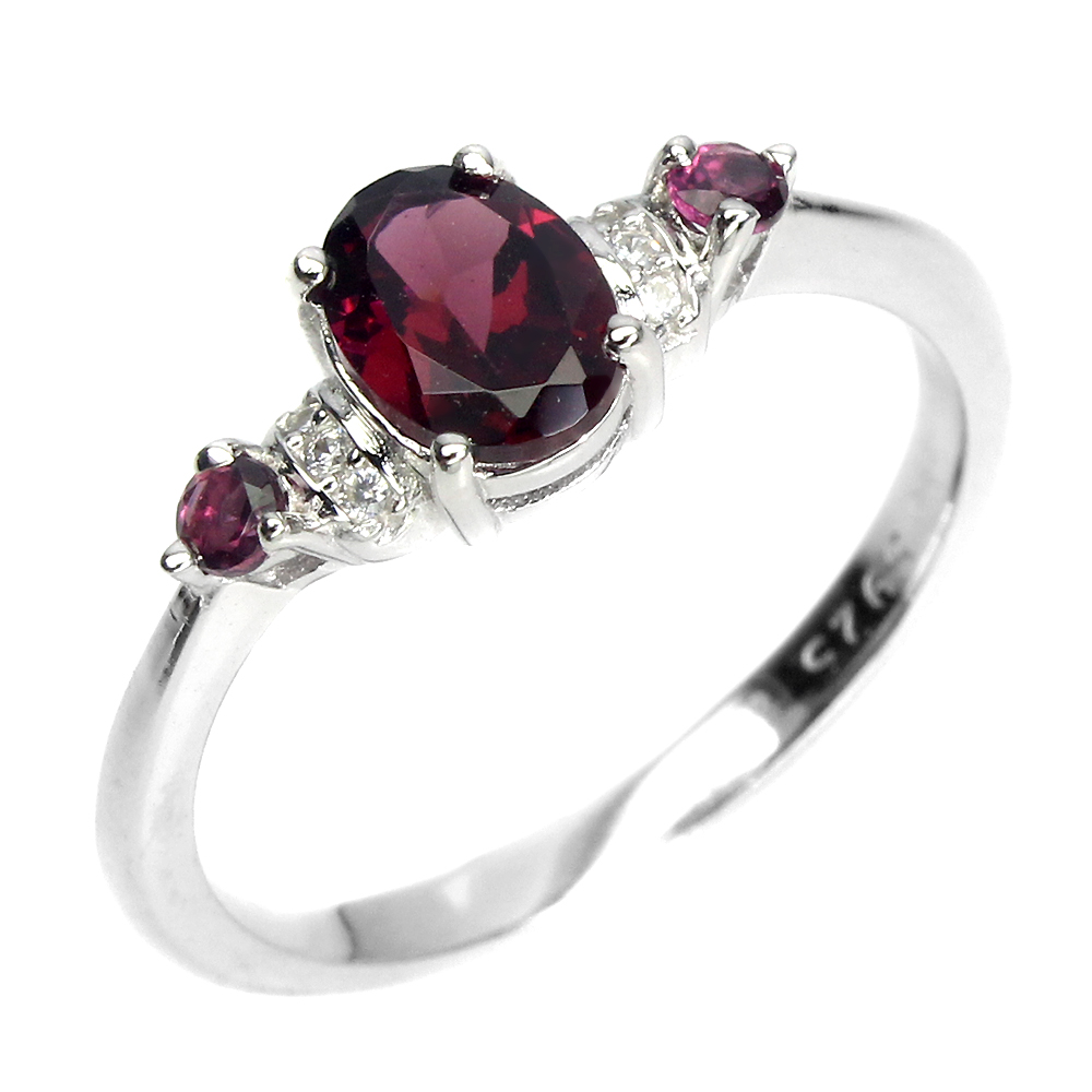Unheated Oval Pink Rhodolite Garnet 7x5mm White Cz 925 Sterling Silver Ring
