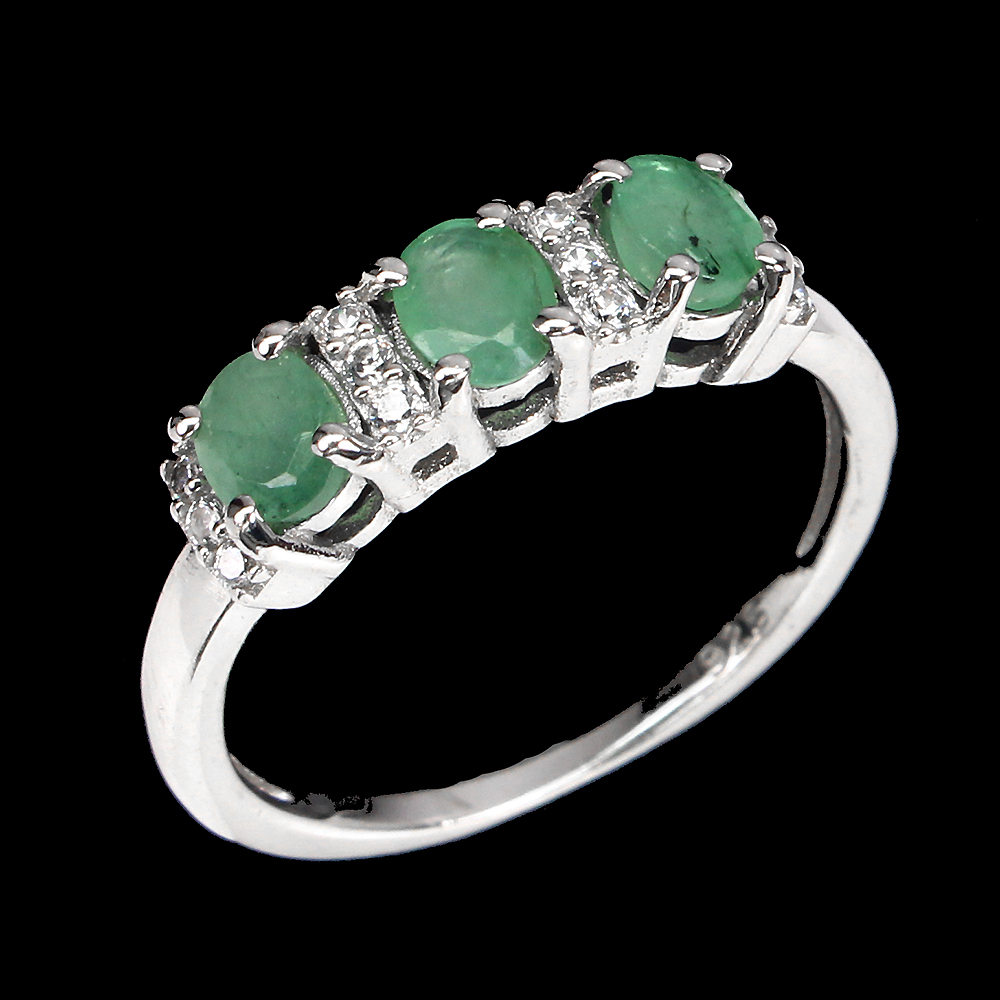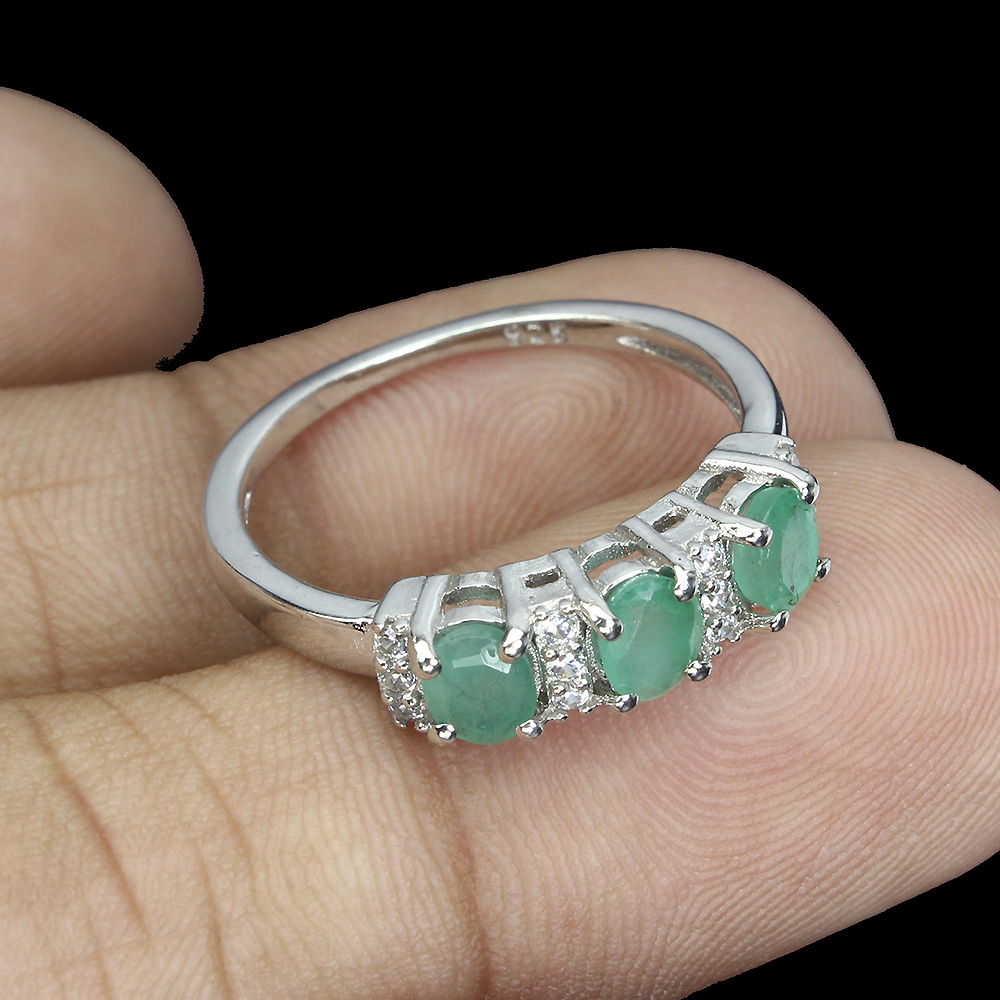 Unheated Oval Emerald 5x4mm Cz 14K White Gold Plate 925 Sterling Silver Ring