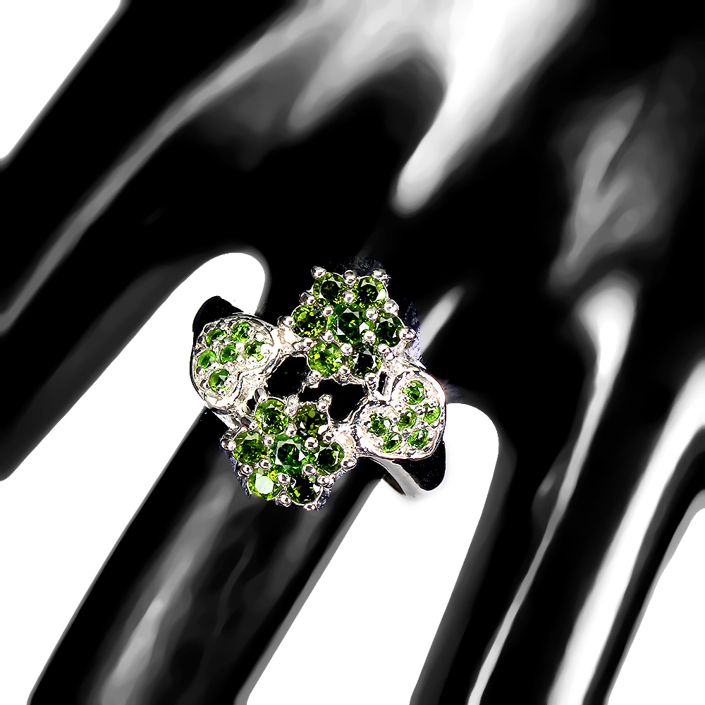 Unheated Round Chrome Diopside White Gold Plate 925 Sterling Silver Flower Ring