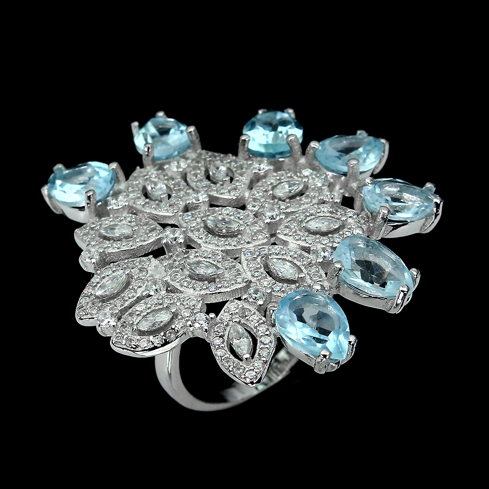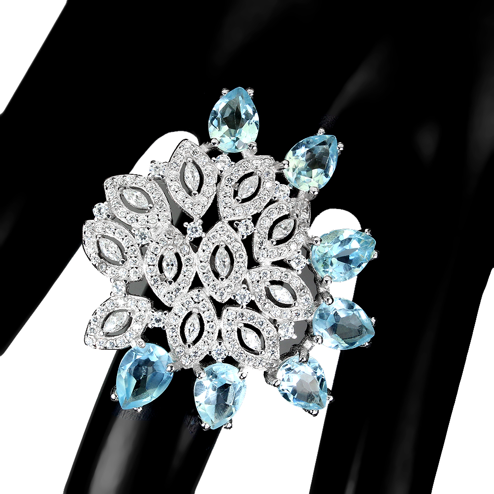 Pear Sky Blue Topaz 7x5mm Cz 14K White Gold Plate 925 Sterling Silver Big Ring