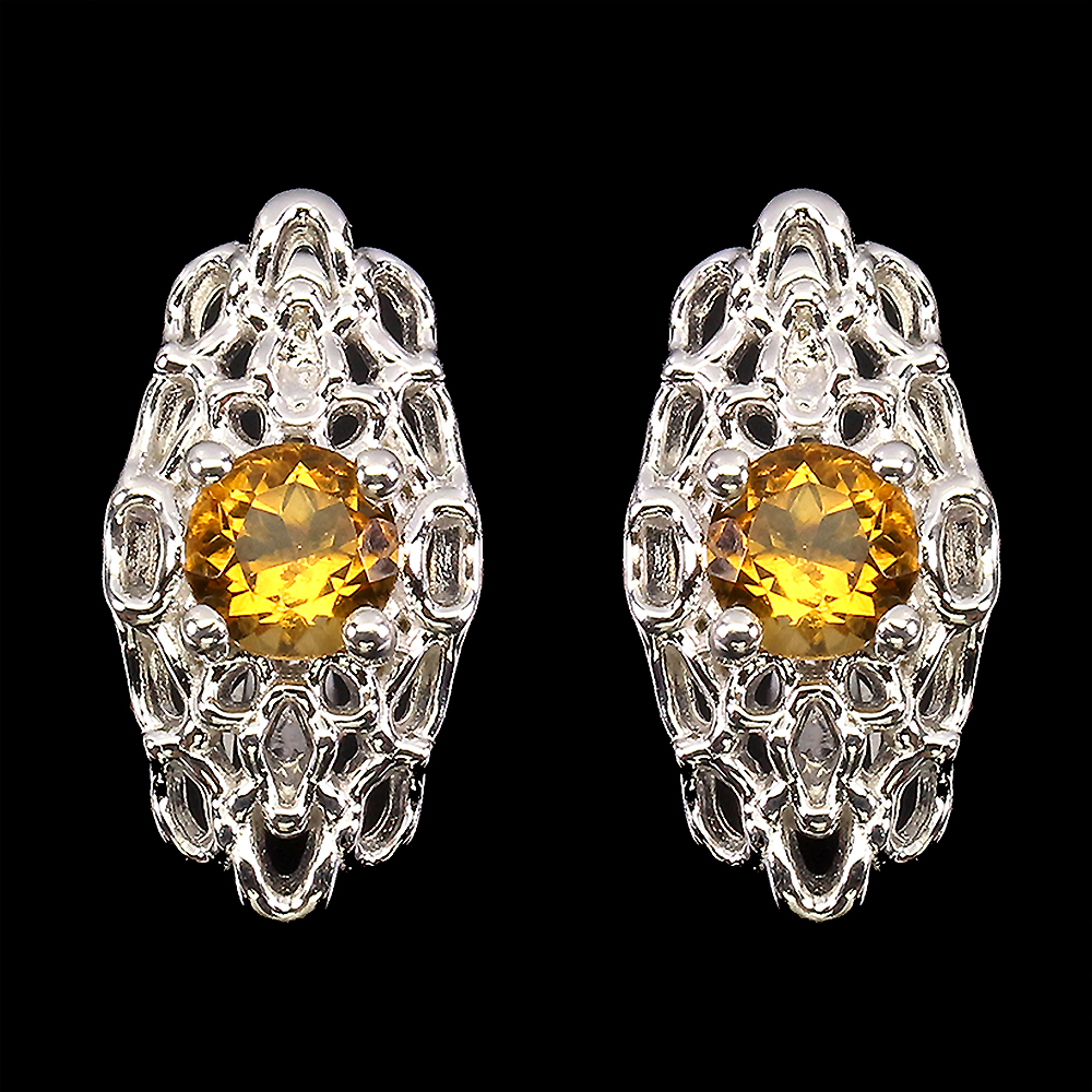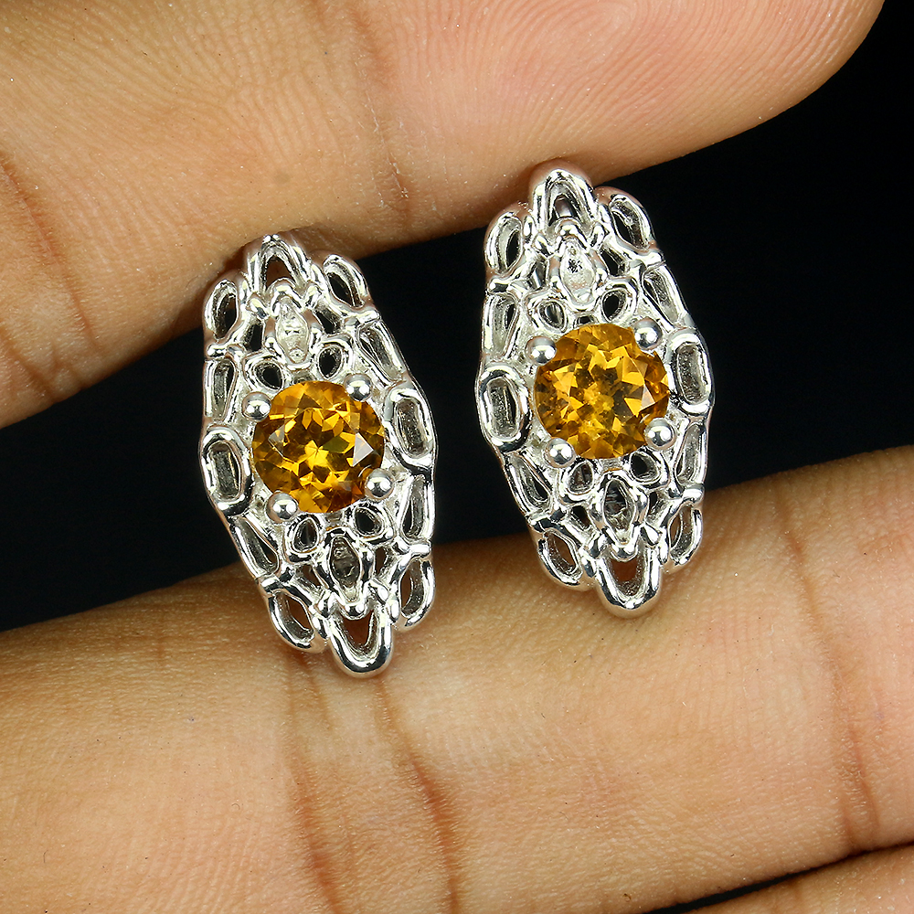 Unheated Round Citrine 6mm 14K White Gold Plate 925 Sterling Silver Earrings
