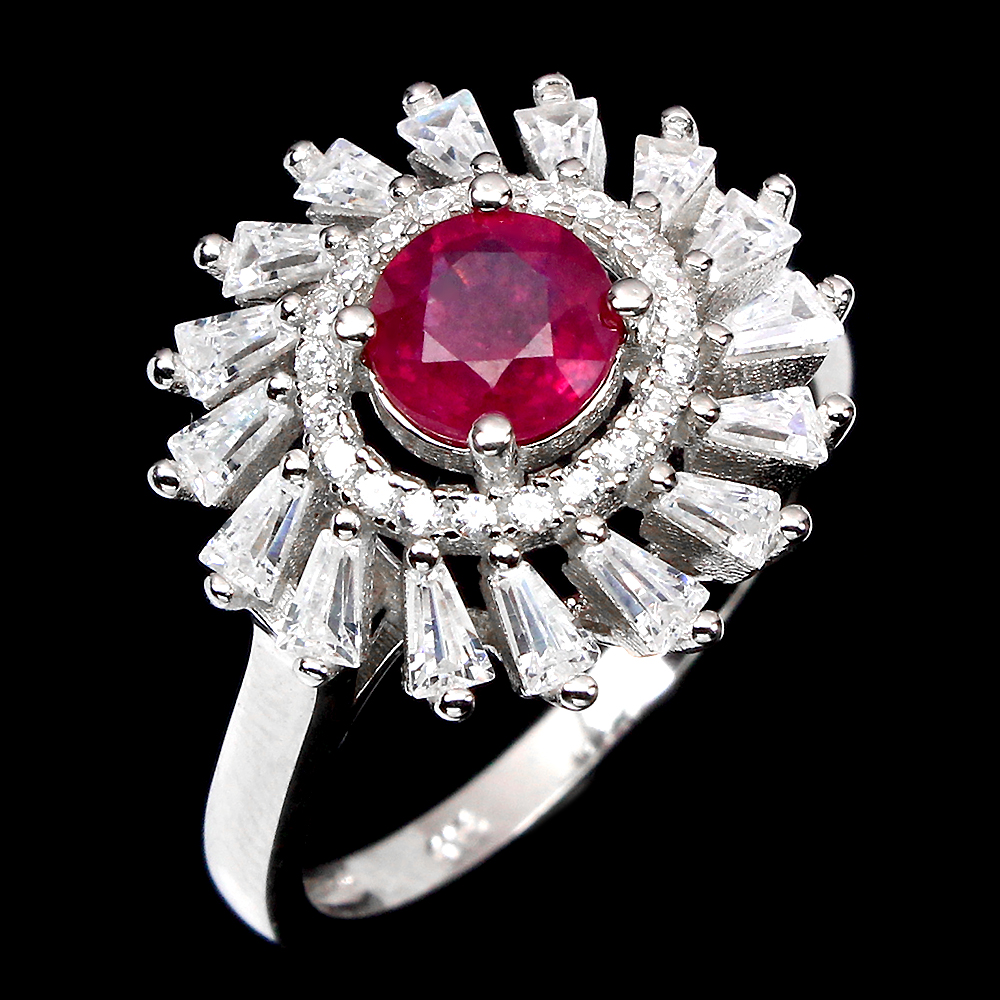 Round Red Ruby 6mm White Cz 14K White Gold Plate 925 Sterling Silver Ring