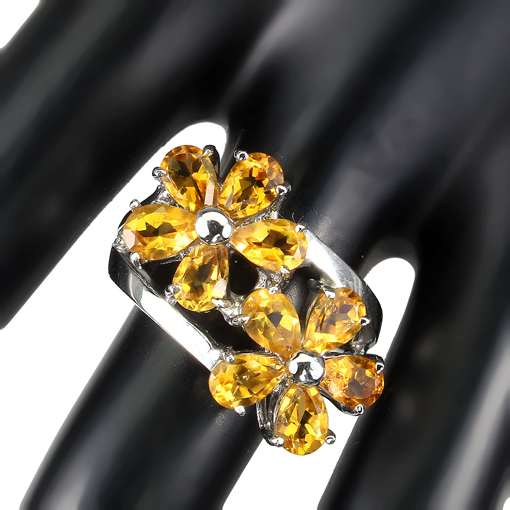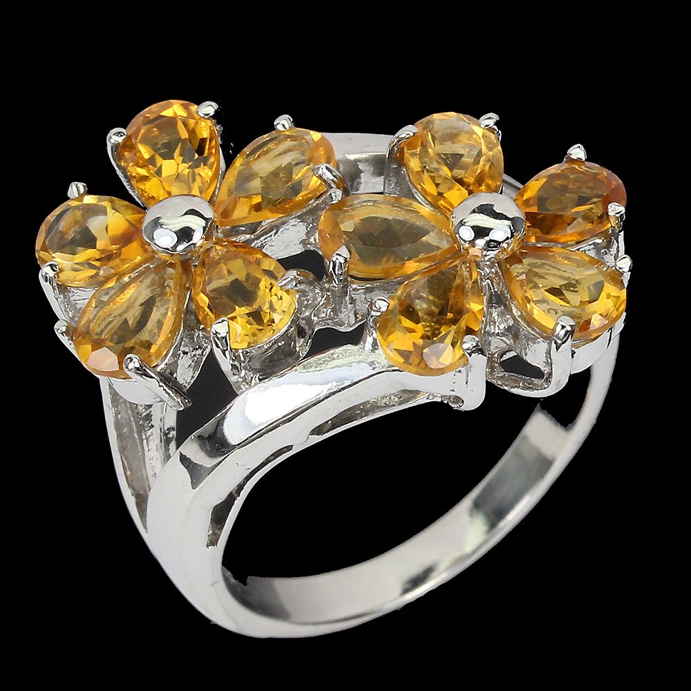 Unheated Pear Citrine 6x4mm 14K White Gold Plate 925 Sterling Silver Ring Size 9