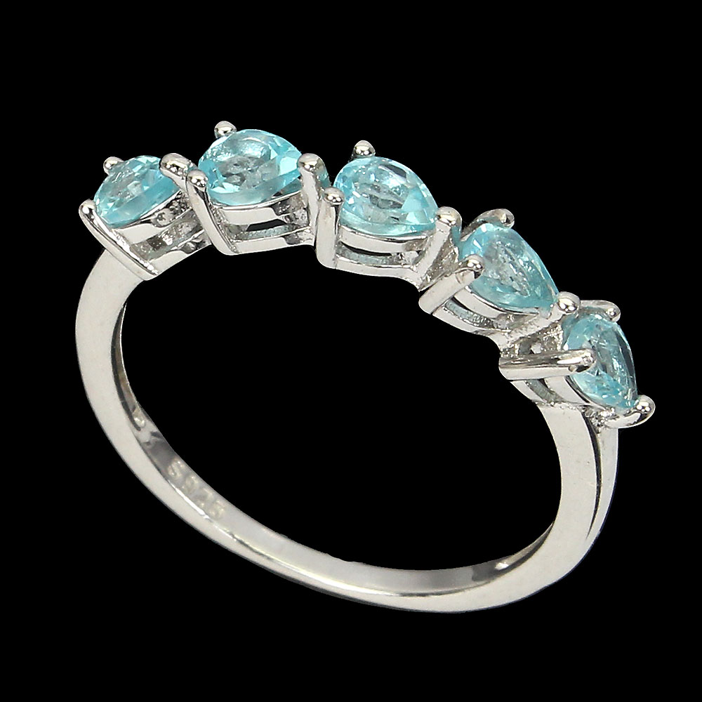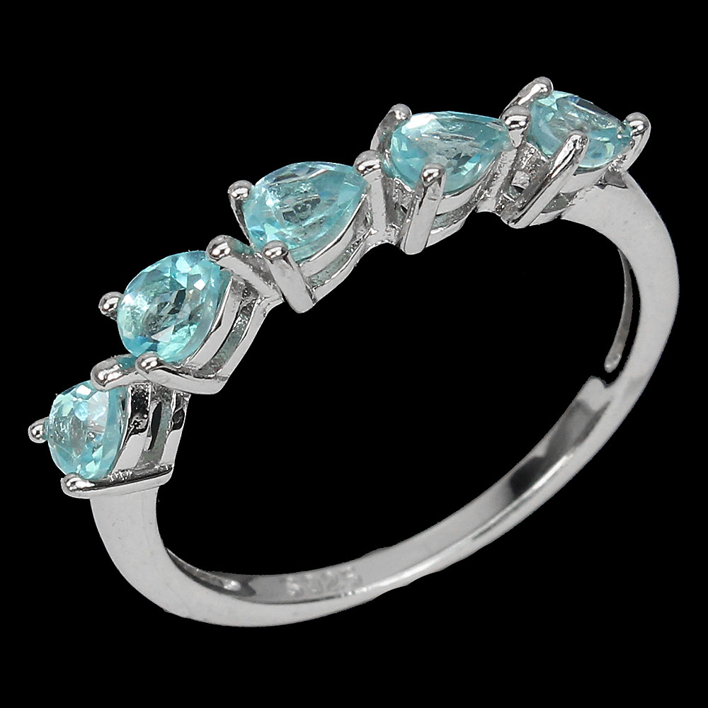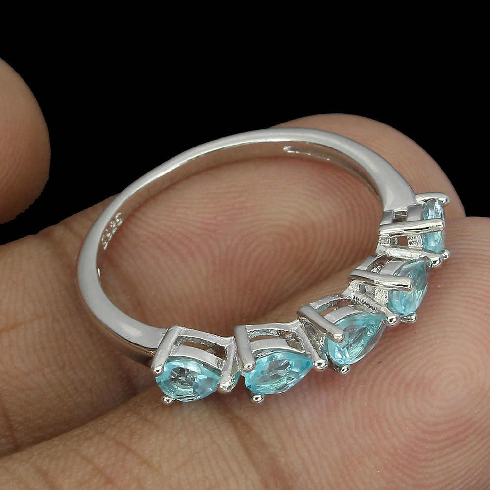 Unheated Pear Apatite 4x3mm 14K White Gold Plate 925 Sterling Silver Ring Size 8